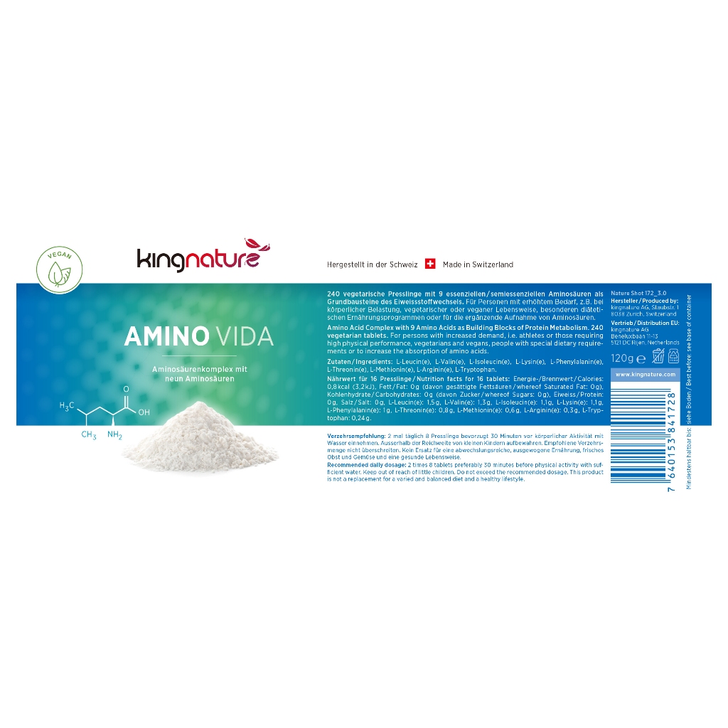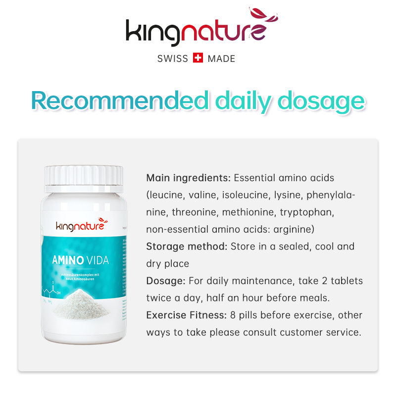 Kingnature Amino Vida - 9 highly pure amino acids from natural origin, vegan (240s)(40days+ Supply)