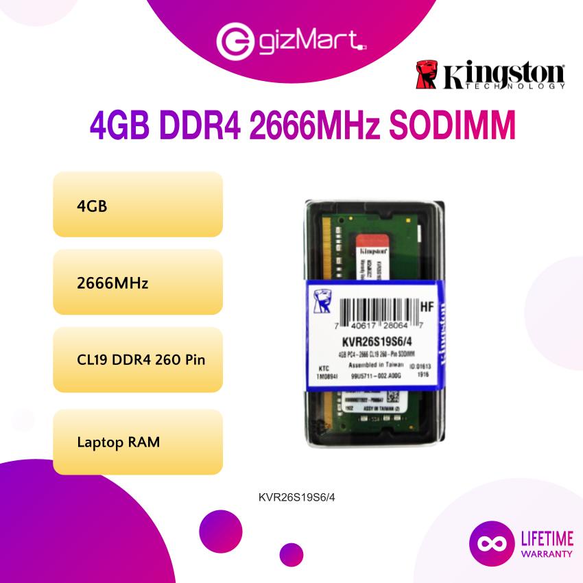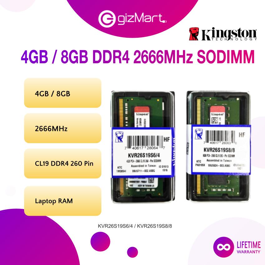 Kingston 4GB / 8GB RAM DDR4 2666Mhz PC4 2666 SODIMM Laptop / Notebook RAM ( KVR26S19S6/4 / KVR26S19S8/8 )