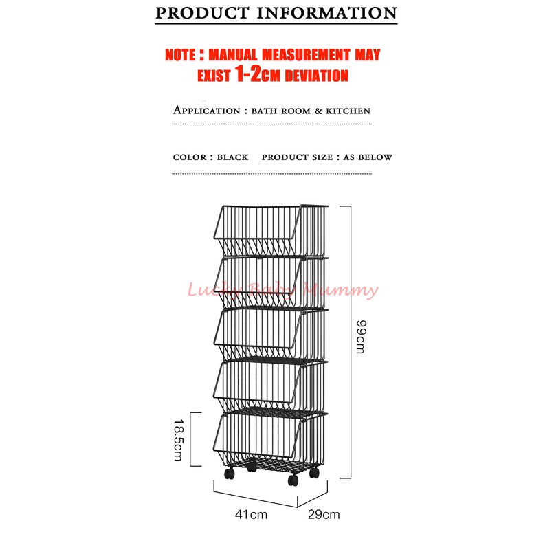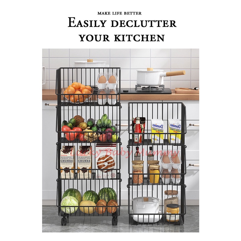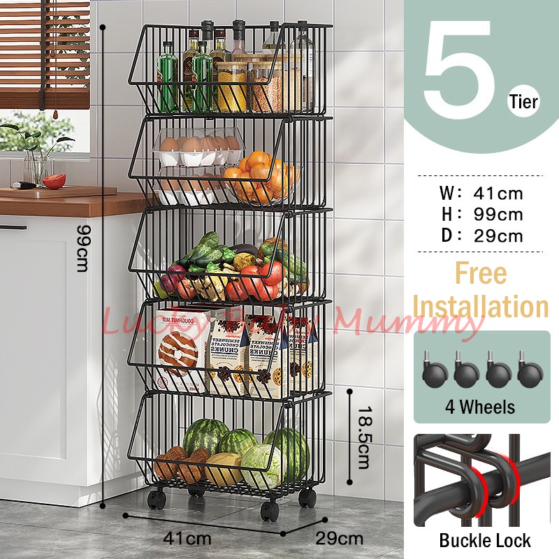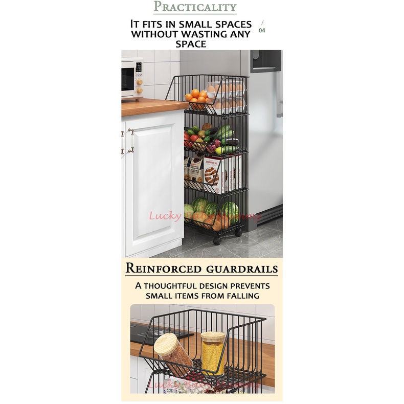 Kitchen Basket Rack with Wheels Multipurpose Rack Storage Heavy Duty Vegetable Local Stock