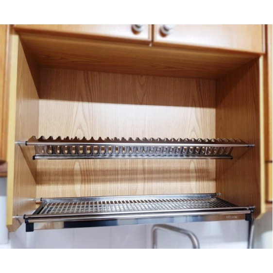 Kitchen Cabinet Dish Rack [ Luxury Stainless Steel SUS304 Double Layer Anti Rust Drain Plate ]