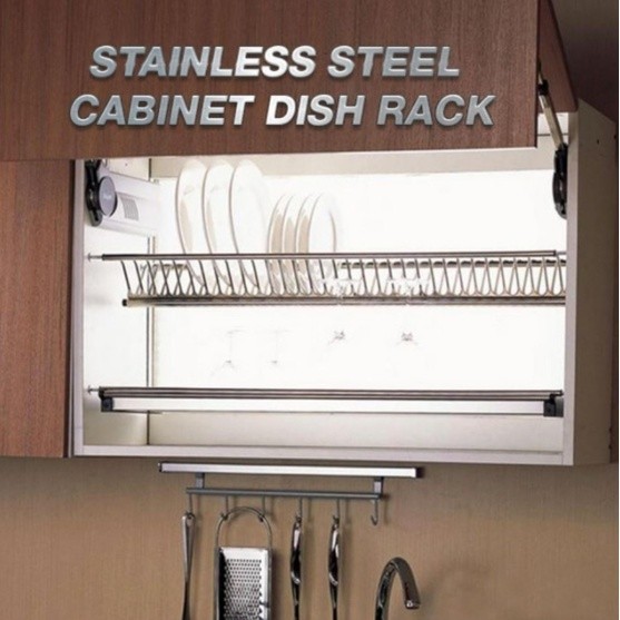 Kitchen Cabinet Dish Rack [ Luxury Stainless Steel SUS304 Double Layer Anti Rust Drain Plate ]