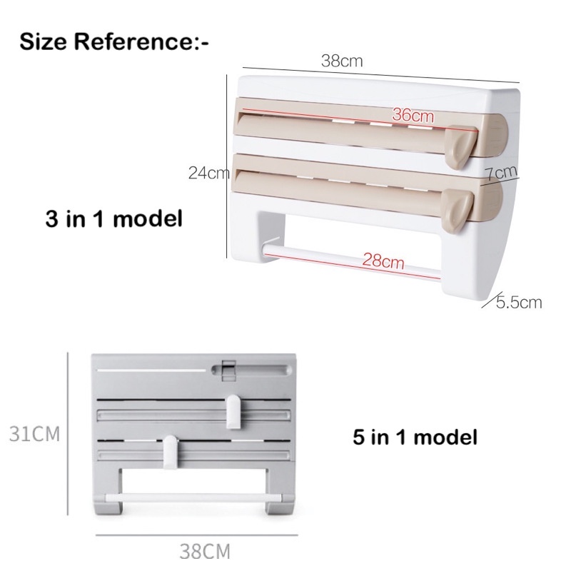 Kitchen Cling Wrap Holder Storage Wall Mount for Aluminium Foil Paper Towel Dispenser Rack