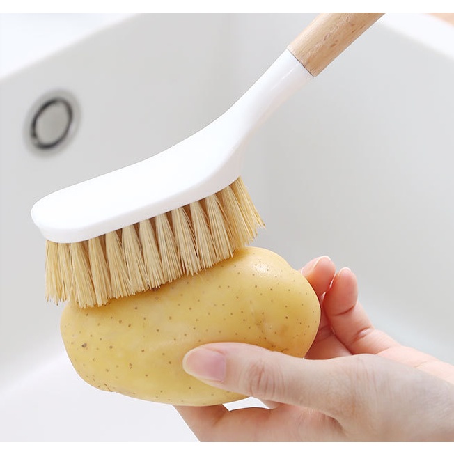Kitchen Dish Brush Bamboo Handle Dish Scrubber Built-in Scraper, Scrub Brush for Pans, Pots, Kitchen Sink Cleaning, Dishwashing and Cleaning Brushes Are Perfect Cleaning Tools