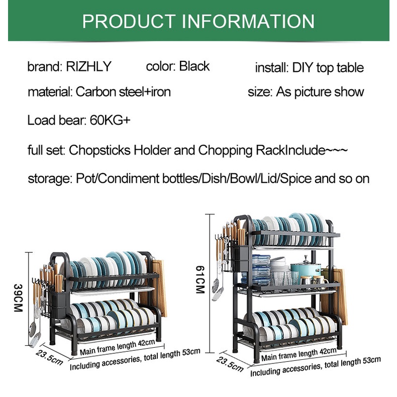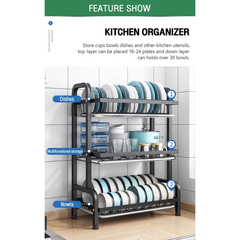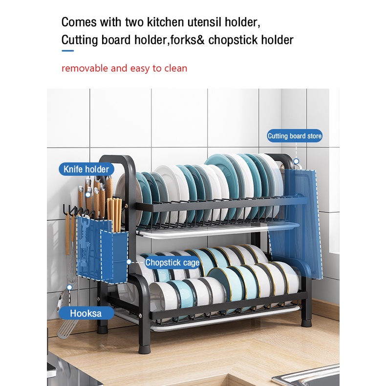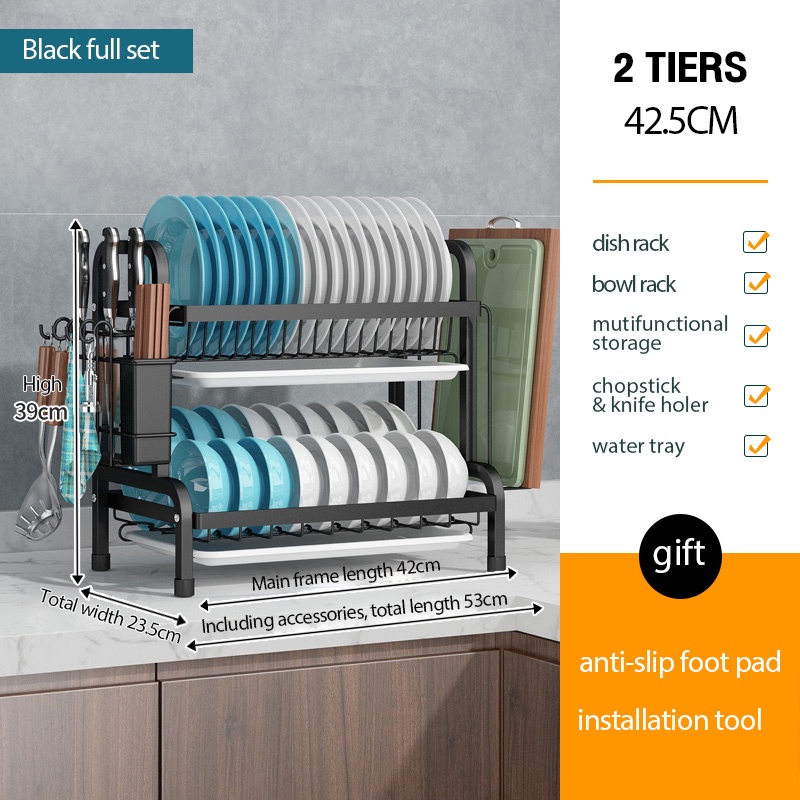Kitchen Dish Rack 2 and 3 Tier Layer with Accessories Drainer Organizer Storage Rack 304 Stainless Steel Dish Rack