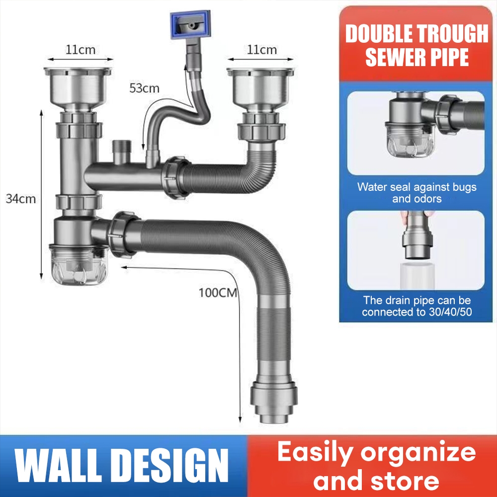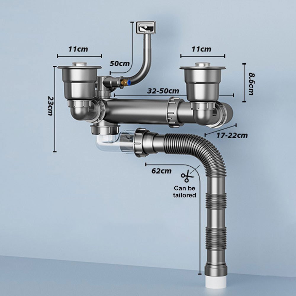 Kitchen Drain Pipe Anti-odor And Anti-blocking Sink Pipe Sewer Pipe Single Or Double Garbage Trap Sink Accessories Household Space-saving