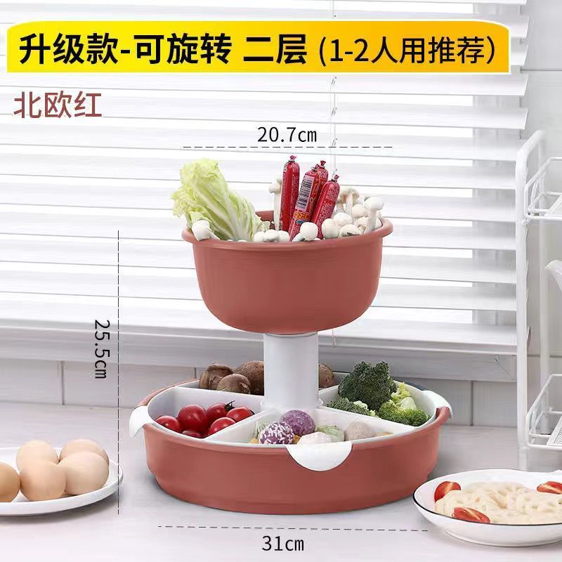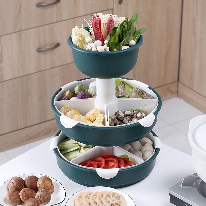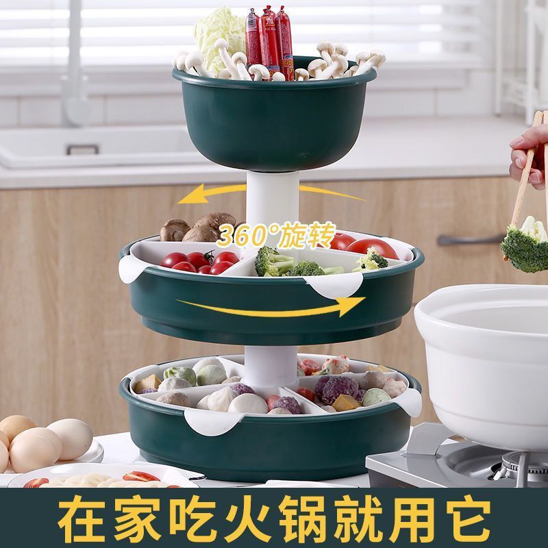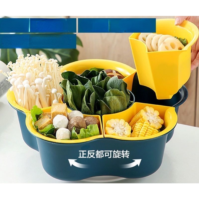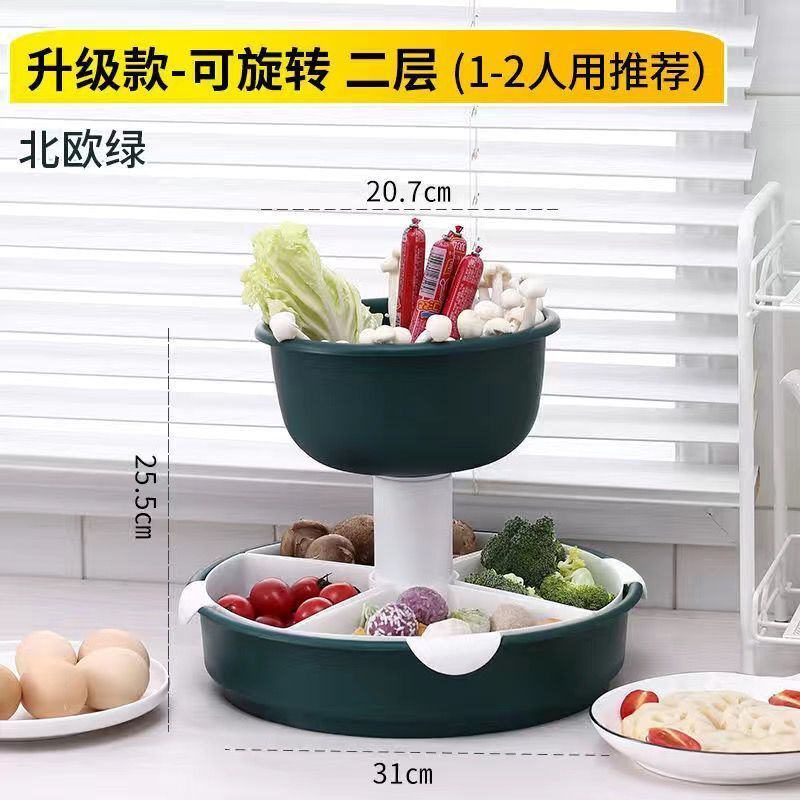 Kitchen Large Hot Pot Blue Strainer Basket Household Rotating Hot Pot Blue Vegetable Platter Double-Layer Plastic Rack Artifact/Hot Pot Tray / Hot Pot Ingredients Tray Plate/Steamboat Platter / Fruit Plate/Vegetable Tray