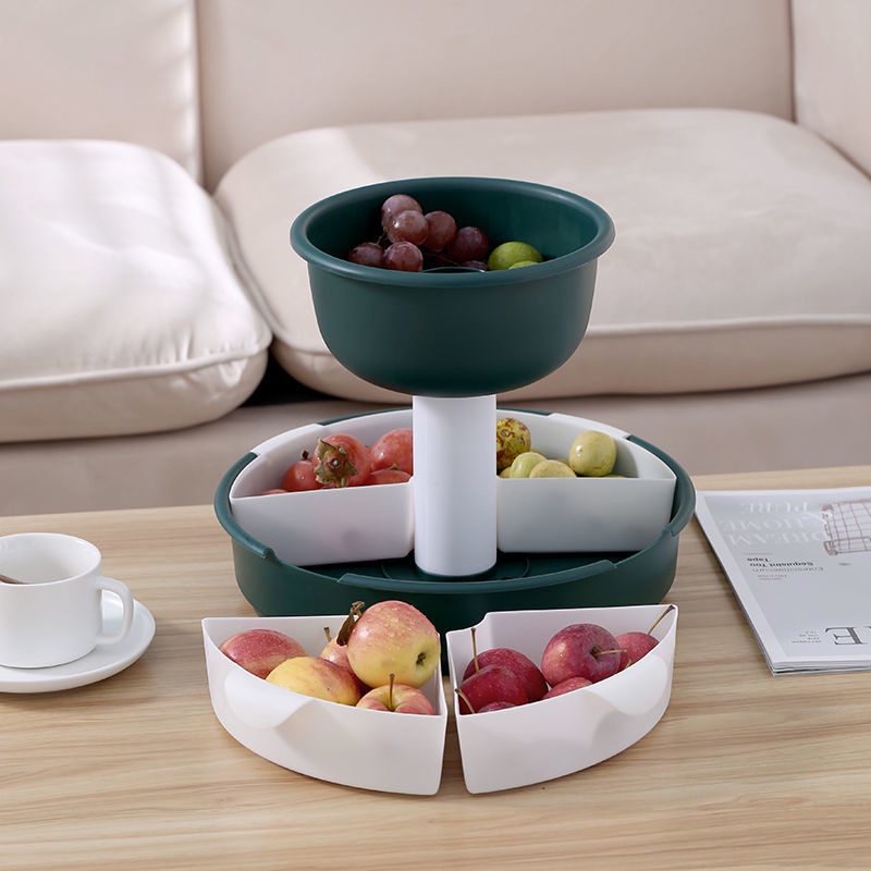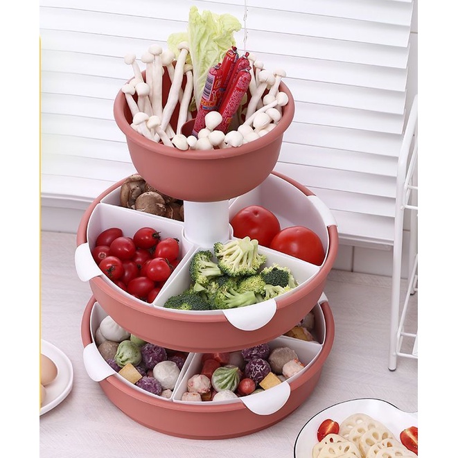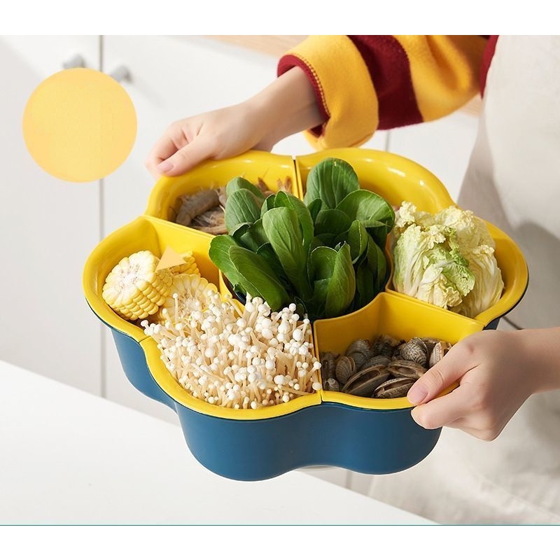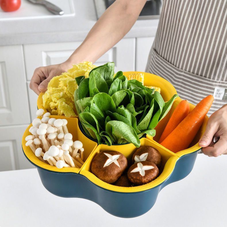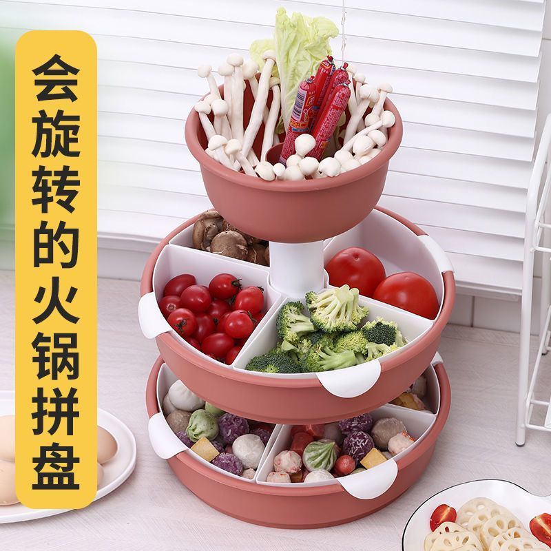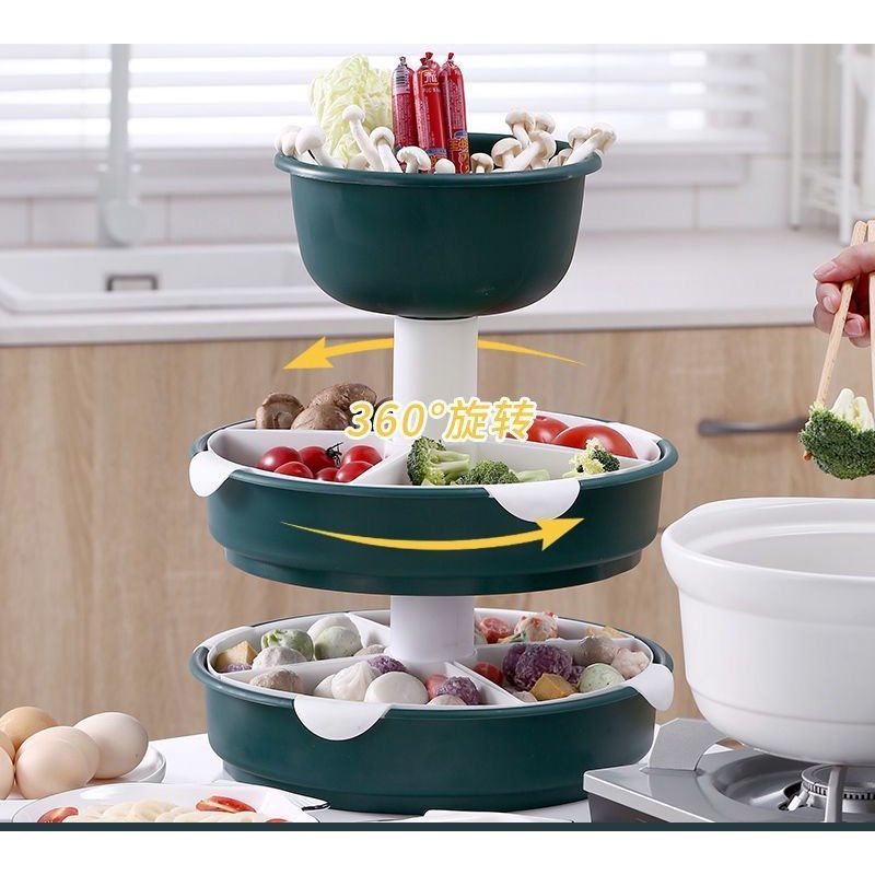 Kitchen Large Hot Pot Blue Strainer Basket Household Rotating Hot Pot Blue Vegetable Platter Double-Layer Plastic Rack Artifact/Hot Pot Tray / Hot Pot Ingredients Tray Plate/Steamboat Platter / Fruit Plate/Vegetable Tray