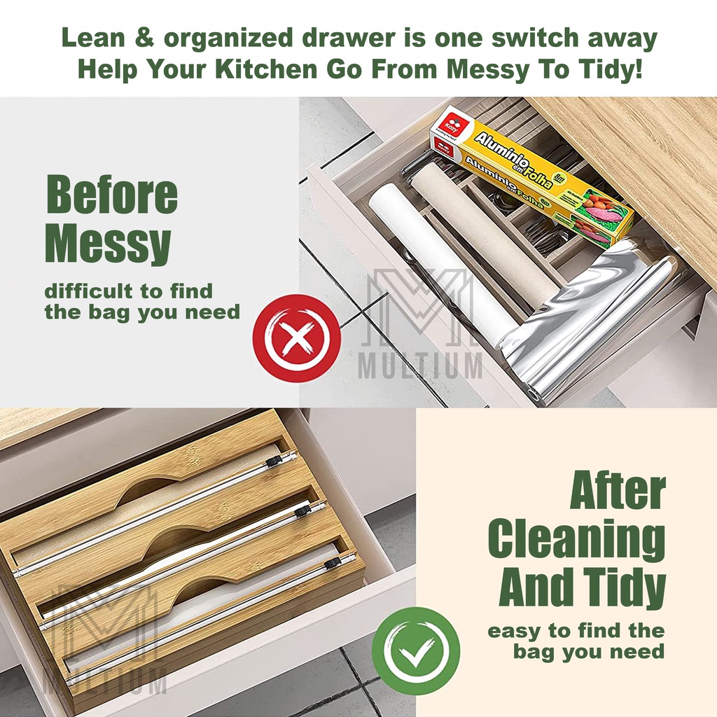 Kitchen Organiser Bamboo Rolls Drawer kitchen organiser| Ziplock Bag For Food | Ziplock Organiser