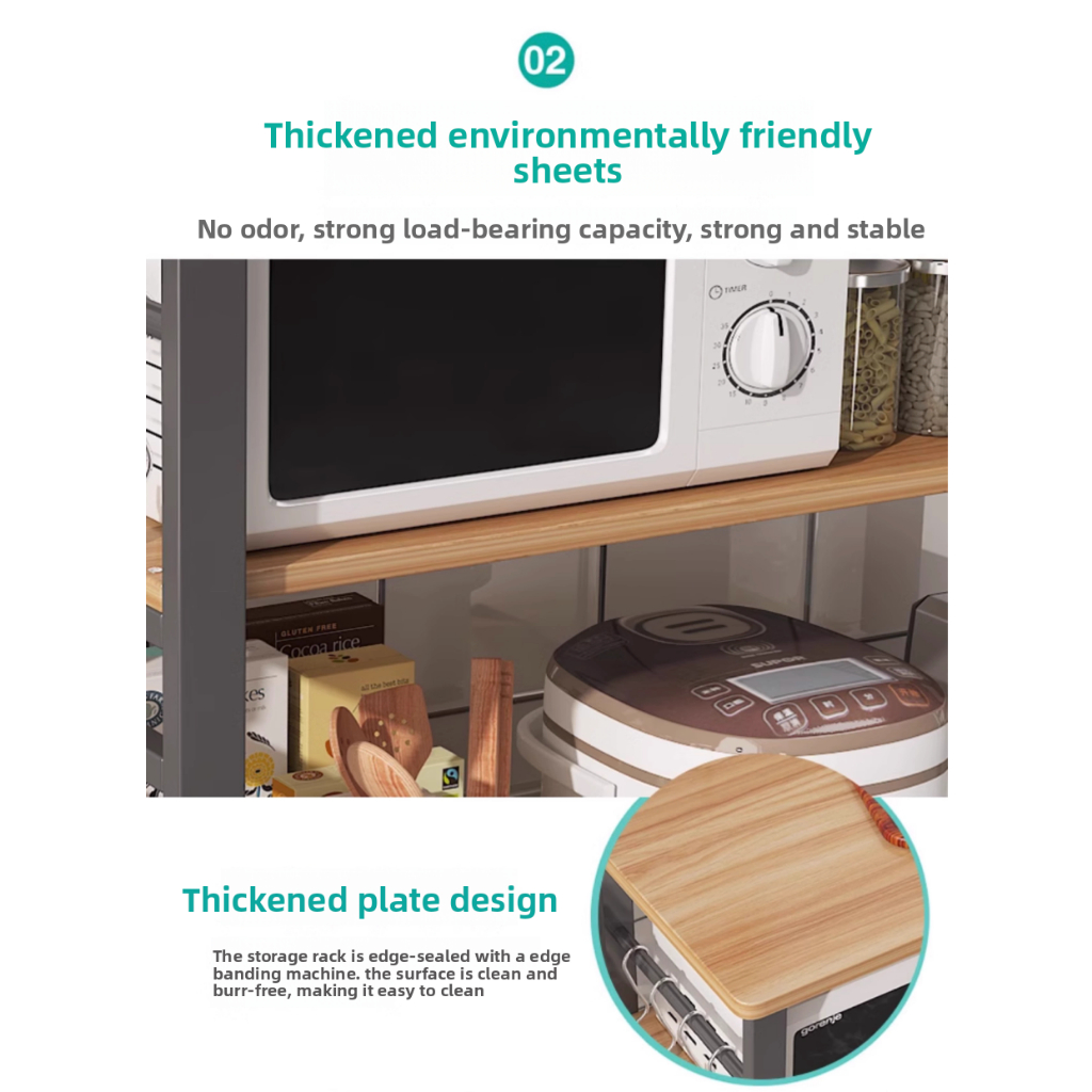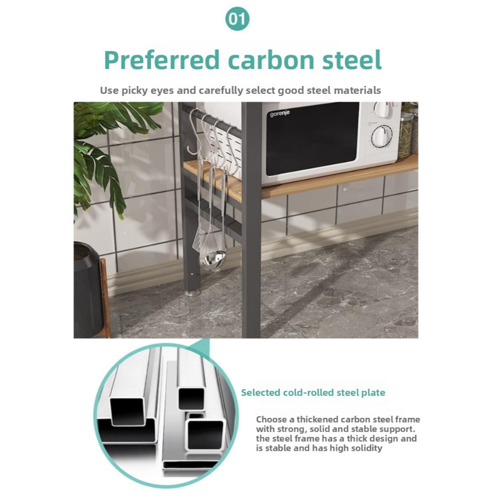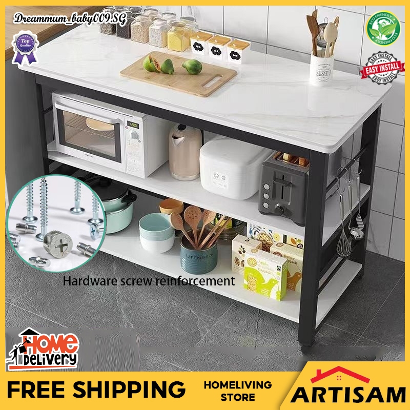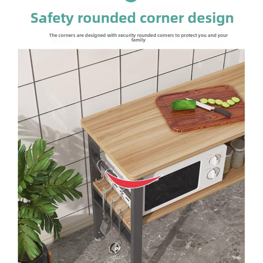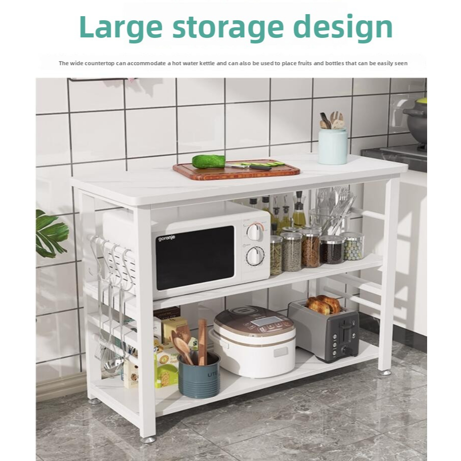 【Ready Stock】Kitchen Organiser Rack Floor Type Microwave Oven Storage Rack Long Table Cutting Table Multi Layer Storage Shelf