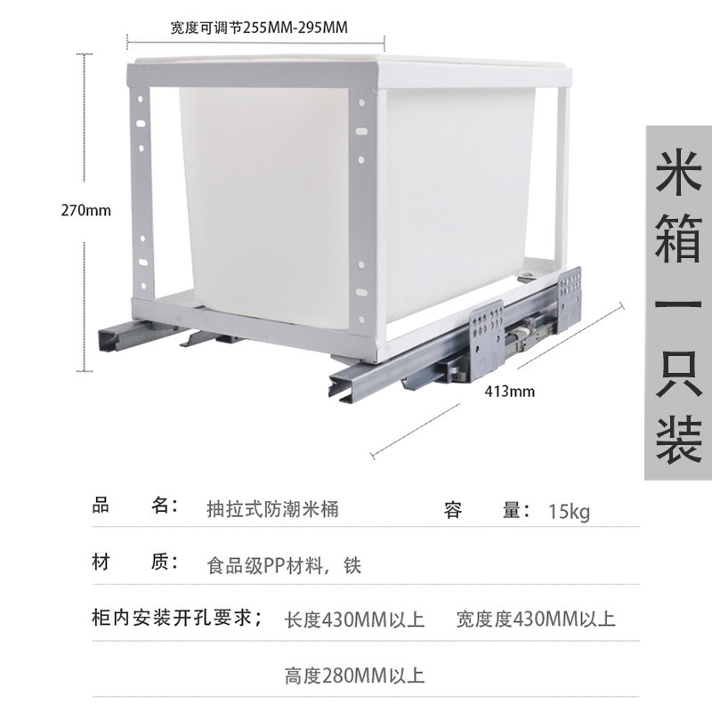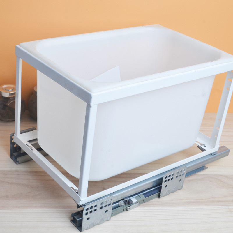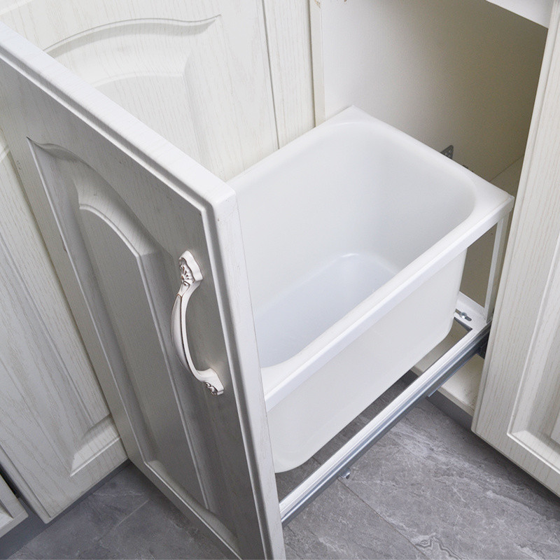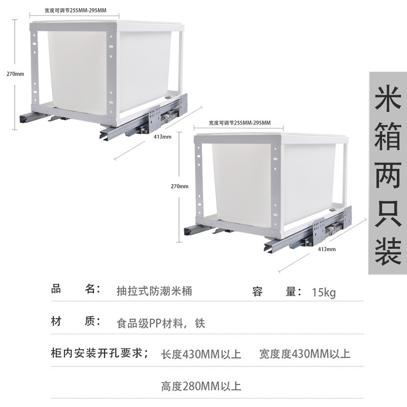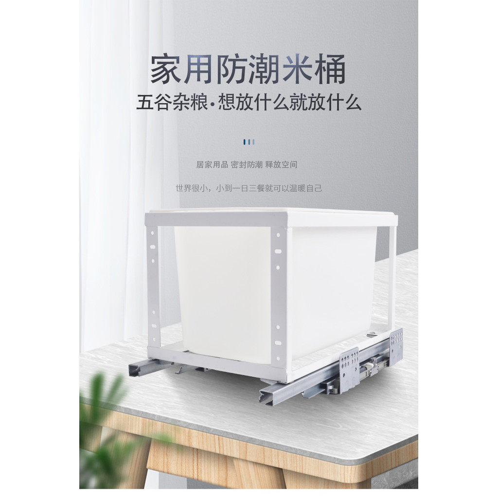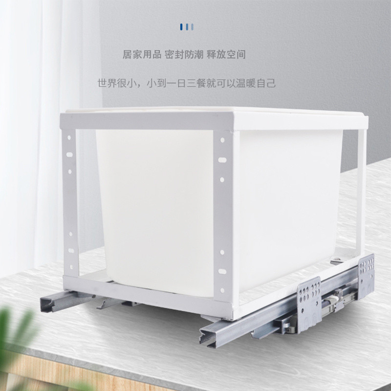 Kitchen Pull-out Trash Can Cabinet with Door Rice Bin Built-in Embedded Storage Containers Damping Storage Hidden Hardware