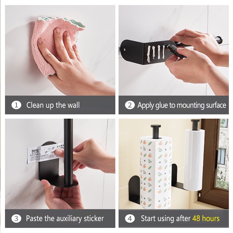 Kitchen Roll Holder Kitchen Towel Tissue Paper Roll Holder Roll Paper Storage Rack,Towel Tissue Storage Self Adhesive Tissue Holder Roll Paper Holder