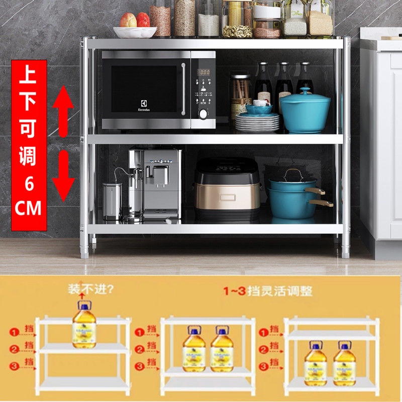 Kitchen Shelf Cabinet Stainless Steel Shelf Cabinet Multi-Functional Storage Three-Layer Kitchen Racks Floor Multi-Layer Vegetable Shelf