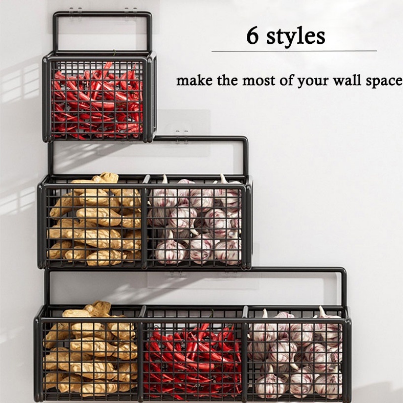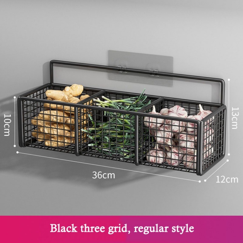 Kitchen Shelving 1/2/3 Grids Perforation-free Wall Hanging Onion Ginger Garlic Storage Rack with Hook Fruits Vegetables Basket