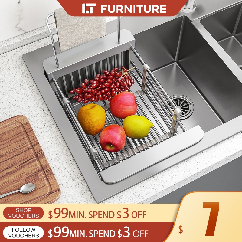 Kitchen Sink Dish Rack Stainless Steel Basket Drain Rack Adjustable Sink Drainer Dish Drying Rack Drain Rack Sink Rack Dish Drainer