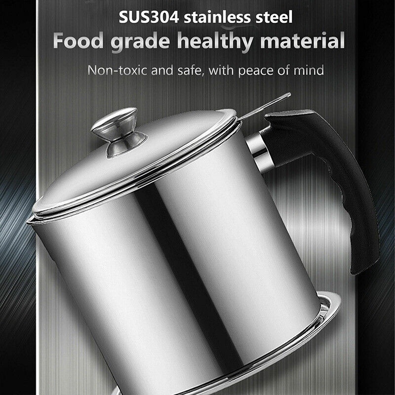 Kitchen Stainless Steel Oil Strainer Pot Bacon Grease Container Jug Storage Can Filter with Coaster Tray