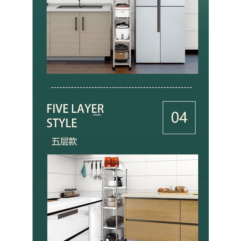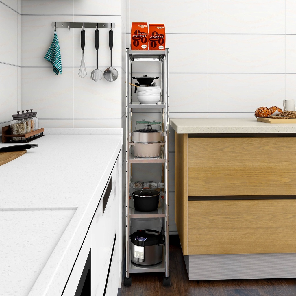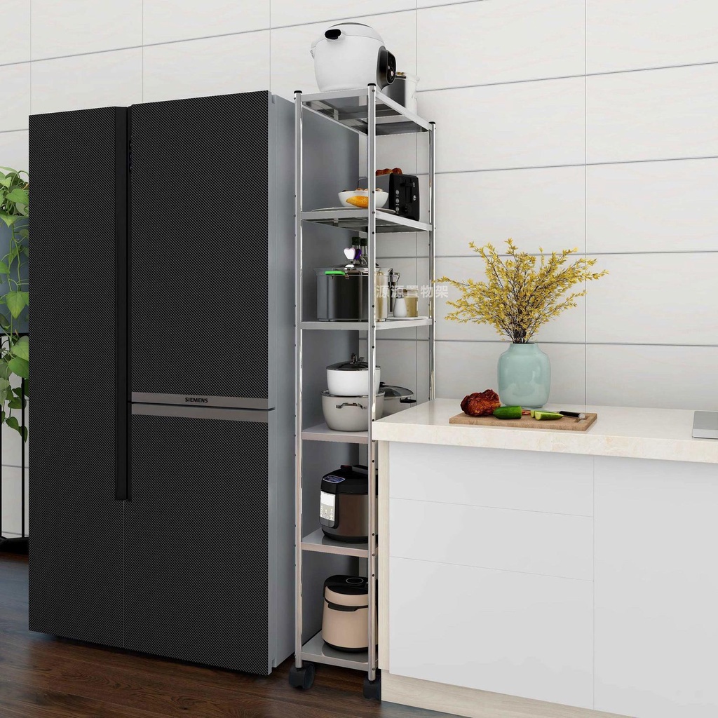 Kitchen Stainless Steel Storage Rack Floor Gap Storage Multi-Layer Refrigerator Gap Rack Pot Bowl Storage Rack Movable/Slim Rack / Kitchen Bathroom Trolley Rack with Wheels