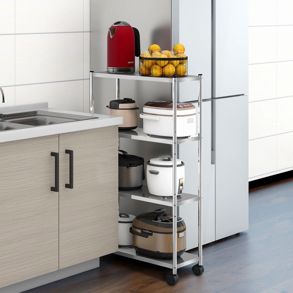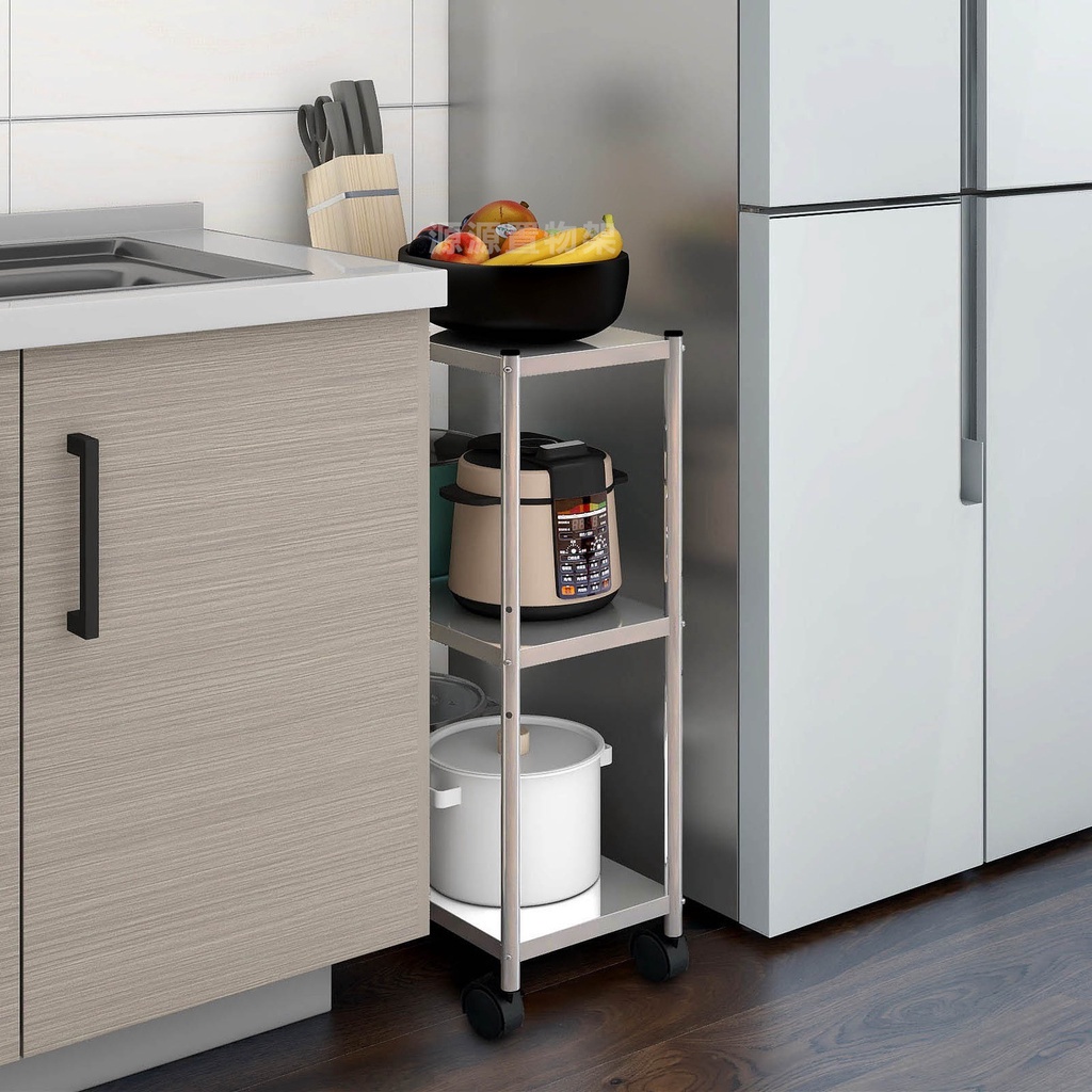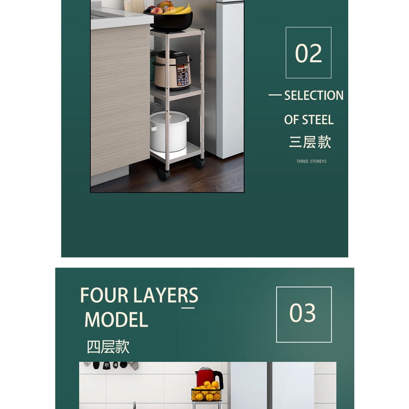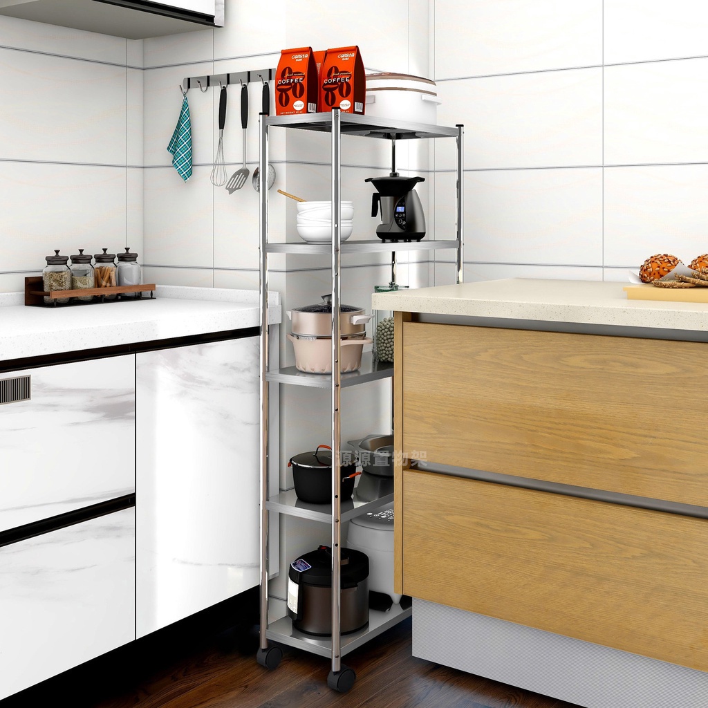 Kitchen Stainless Steel Storage Rack Floor Gap Storage Multi-Layer Refrigerator Gap Rack Pot Bowl Storage Rack Movable/Slim Rack / Kitchen Bathroom Trolley Rack with Wheels