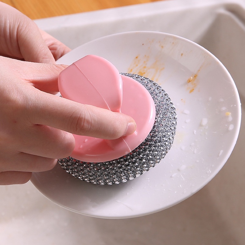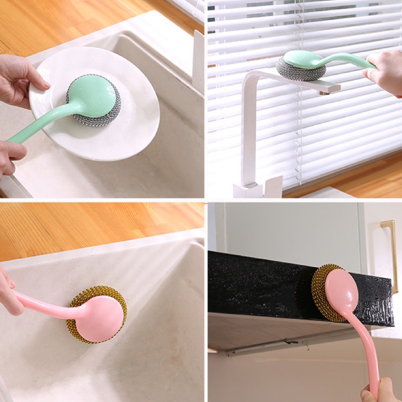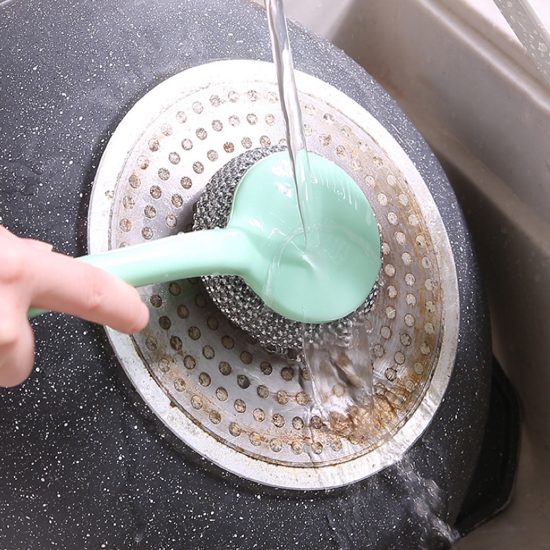 Kitchen Steel Wool Cleaning Brush with Handle Set for Wok Clean Scrubbing