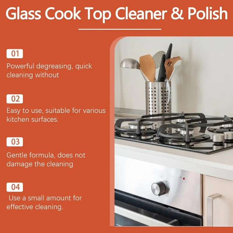 Kitchen Stove Cleaner Non-Scratch Cleaning Kit Glass Cooktop Cleaner Non-Abrasive Powerful Kitchen Degreaser