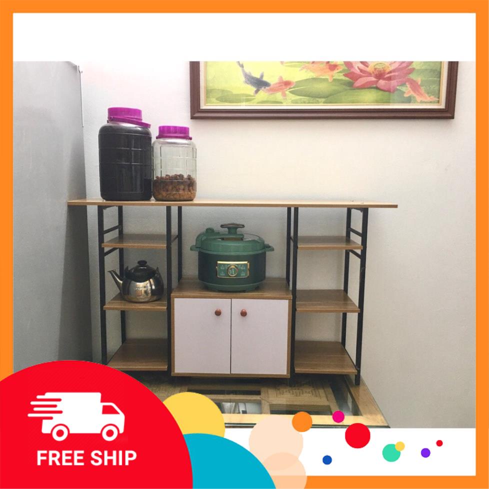 Kitchen shelf, double microwave shelf with 3-compartment door