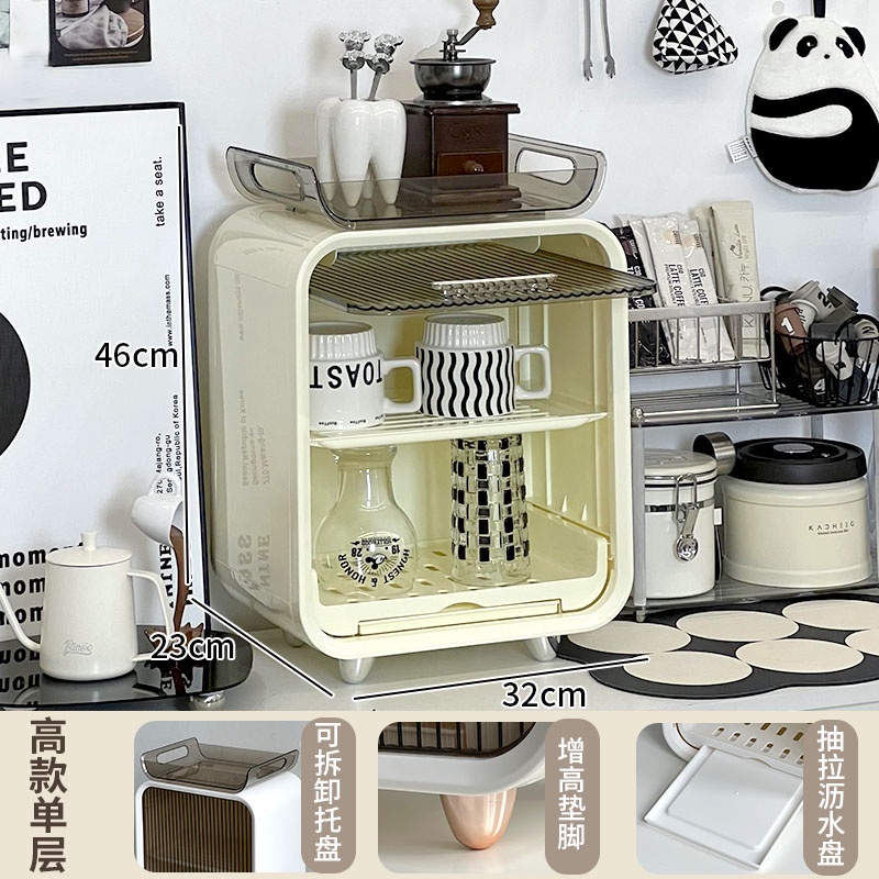 Kitchen tray organizer | tableware storage rack | kitchen organiser | coffee cup mug plastics drainstorage rack | Dust proof tea set storage rack | Bottle drying rack storage rack