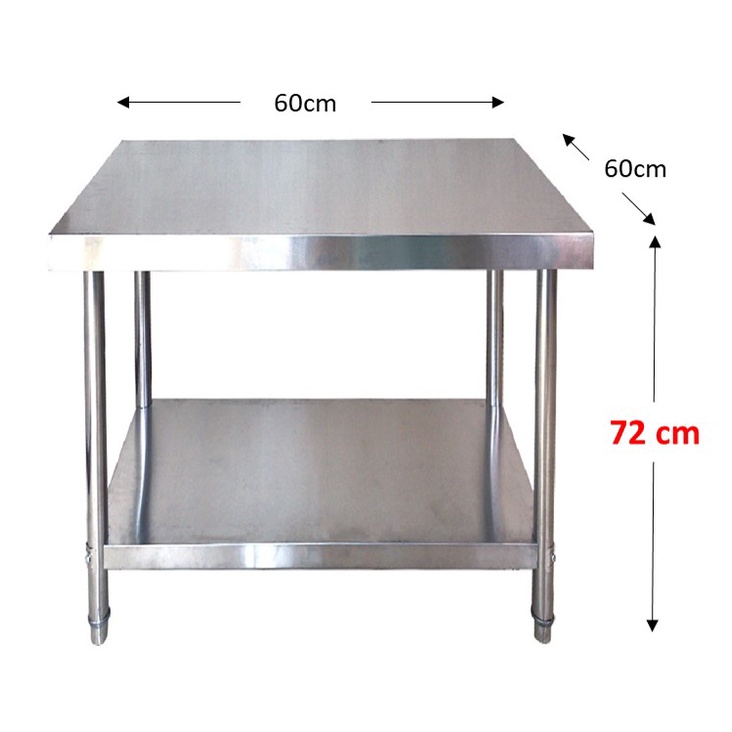 Kizzy 2 Tier Heavy Duty Stainless Steel working Table 2 x 2 ft Meja