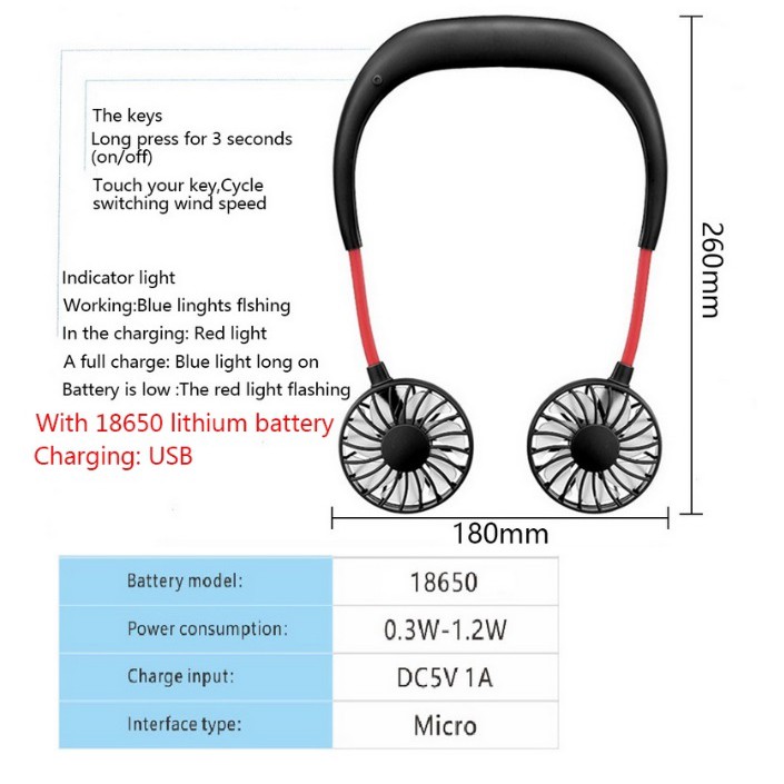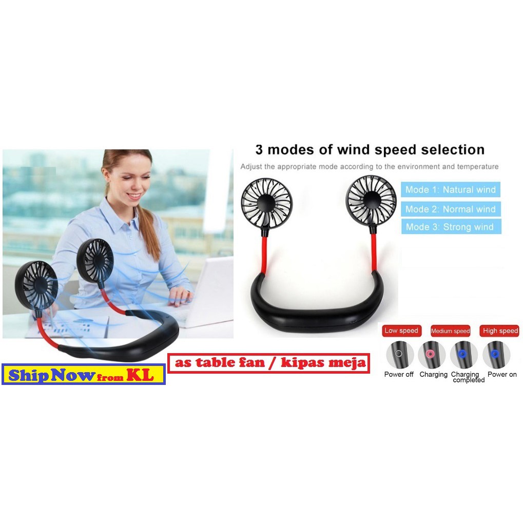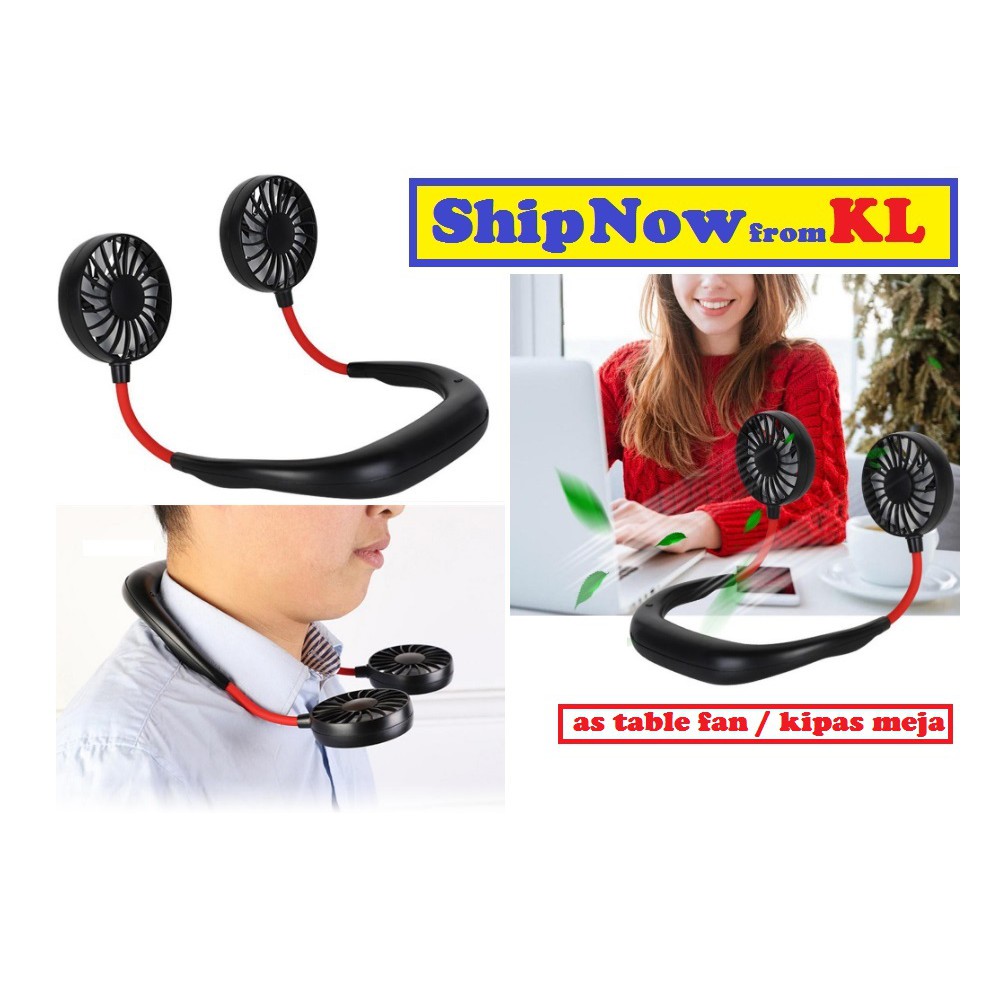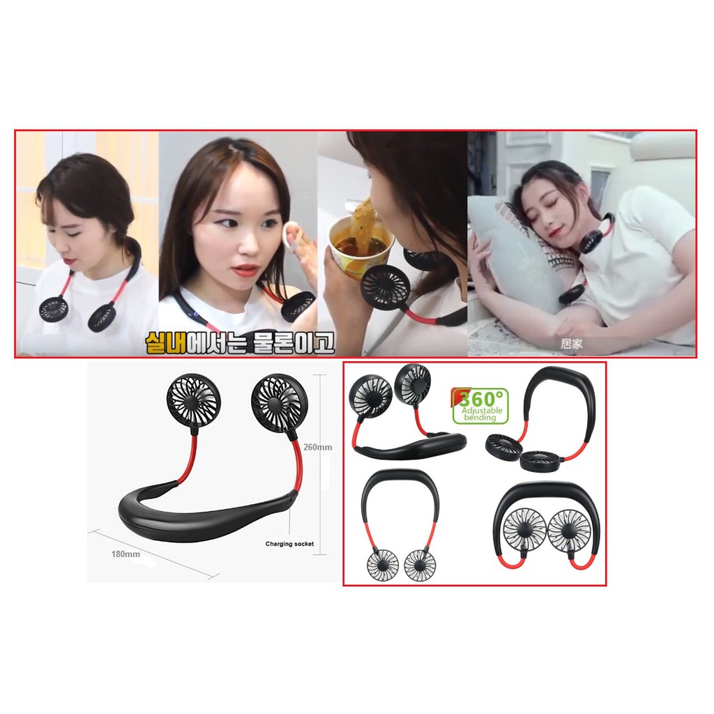 Korea Korean Fashion Mini Hand Free USB Cooling Fan Air Cooler Rechargeable 18650 Battery Lazy Wearable Neckband Neck fa