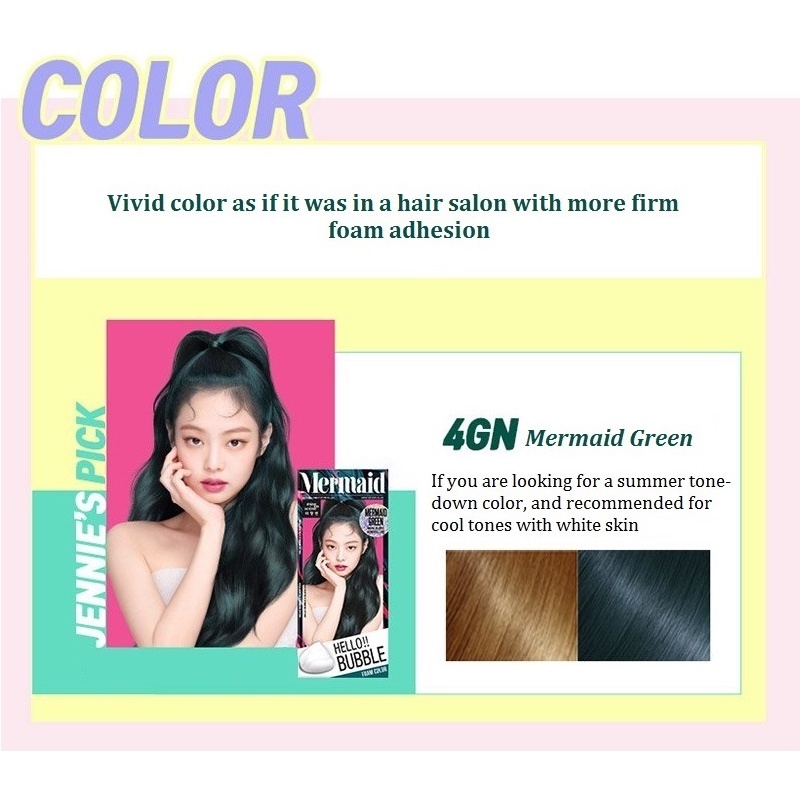 Korea Mise En Scene Hello Bubble Foam Hair Color Dye|Twinkle Blue, Ballet Pink, Mermaid Green, Whale Deep Blue|Smoove1