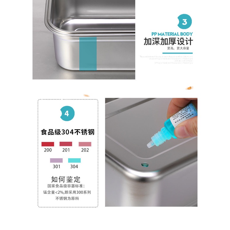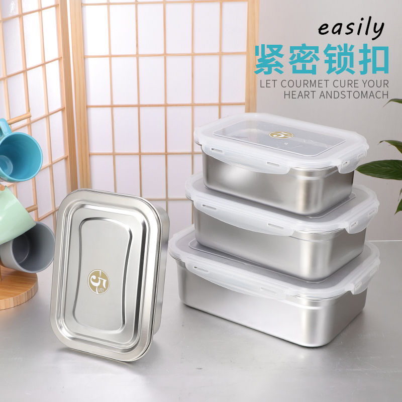 Korea Stainless Steel Food Storage Container Collection in Fridge / Kitchen Rectangle round square Food Container / 304 Stainless Steel Crisper Rectangular Lunch Box with Lid Leak-Proof Sealed Lunch Box Refrigerator Food Sample Storage Box
