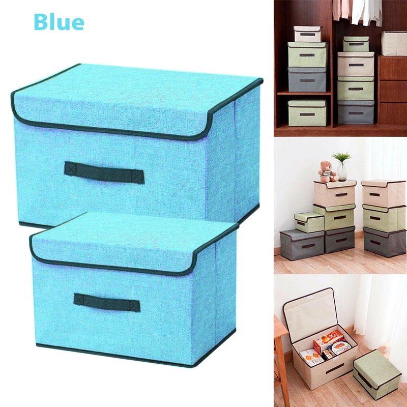 Korean 2 PCS Foldable Cloth Storage Box Linen Fabric Clothes For Wardrobe Toys Organizer Cabinet Blankets