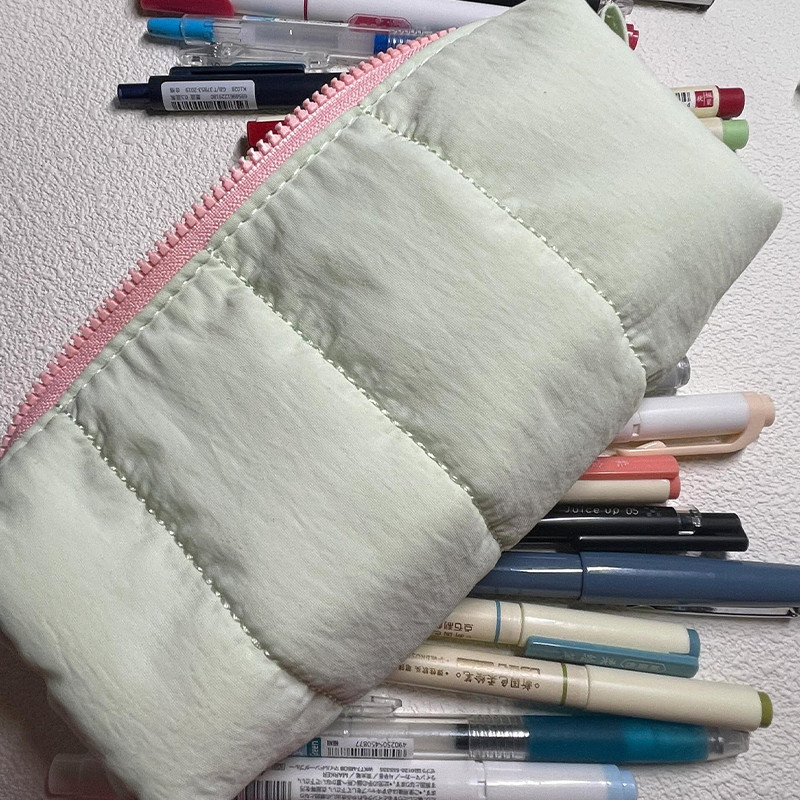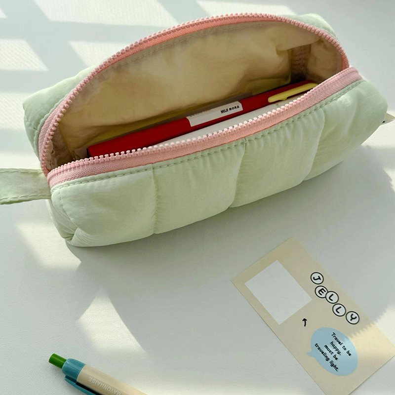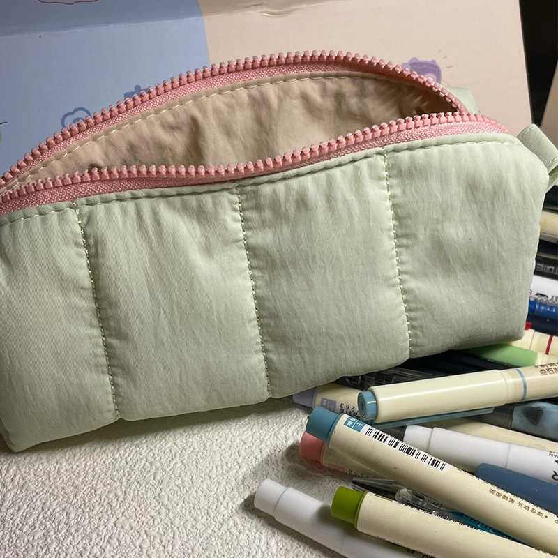 Korean Style Minimalist Solid Color Pencil Case Student Large Capacity Soft Pencil Box Multi-functional Stationery Storage Bag