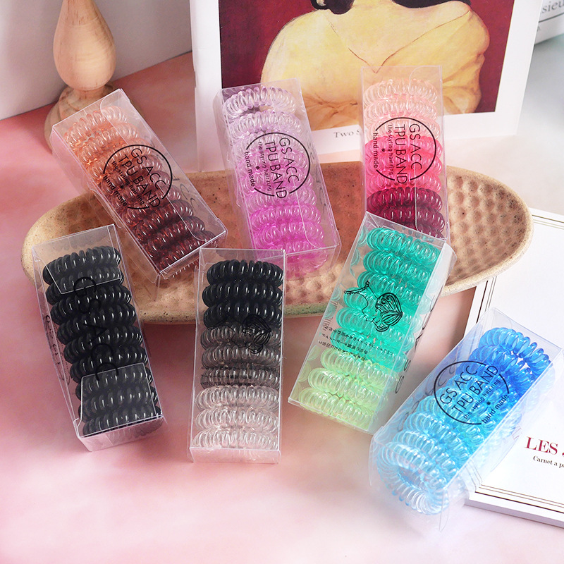 Korean Women Thin Colorful Elastic Telephone Cord Wire No Crease Hair Tie Gradient Color Rubber Band Scrunchies Women Hair Ring Girls Hair Accessories Gift