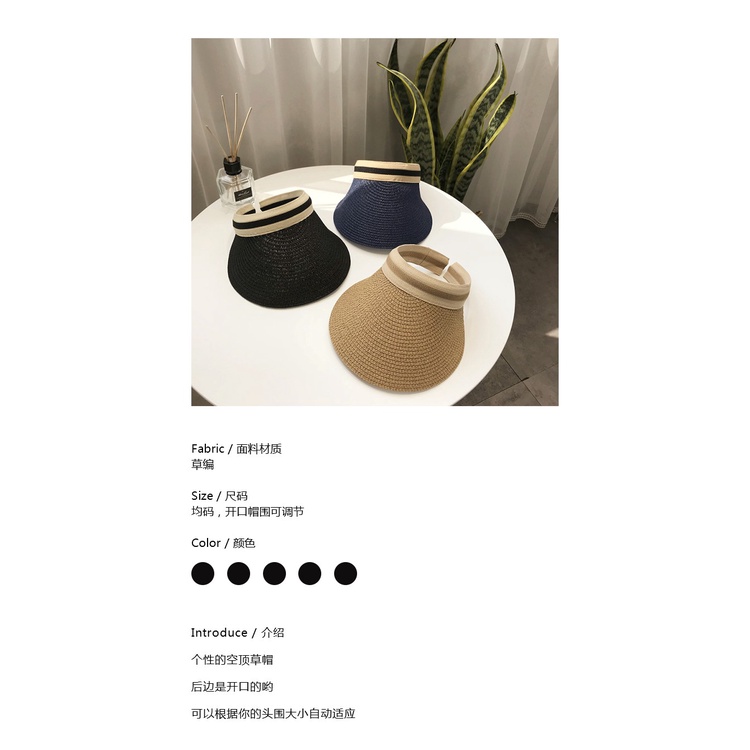 Korean straw plaited visor peaked cap women's summer outdoor travel Sun Protection Sun Hat sun beach casual all-matching
