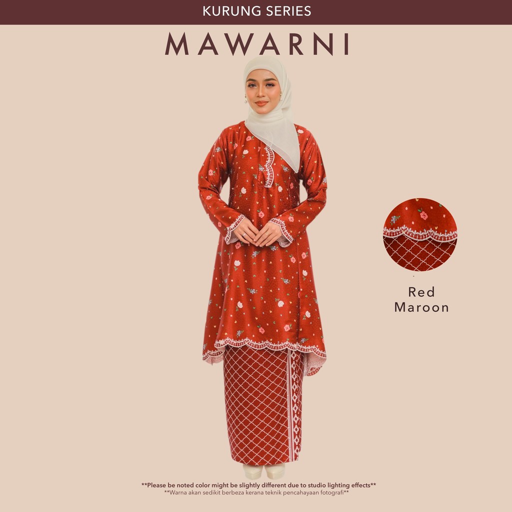 KURUNG MAWARNI Baju Kurung Riau Baju Plus Size Embroidery Modern Classic Muslim Women Silk Fabric Flower Set