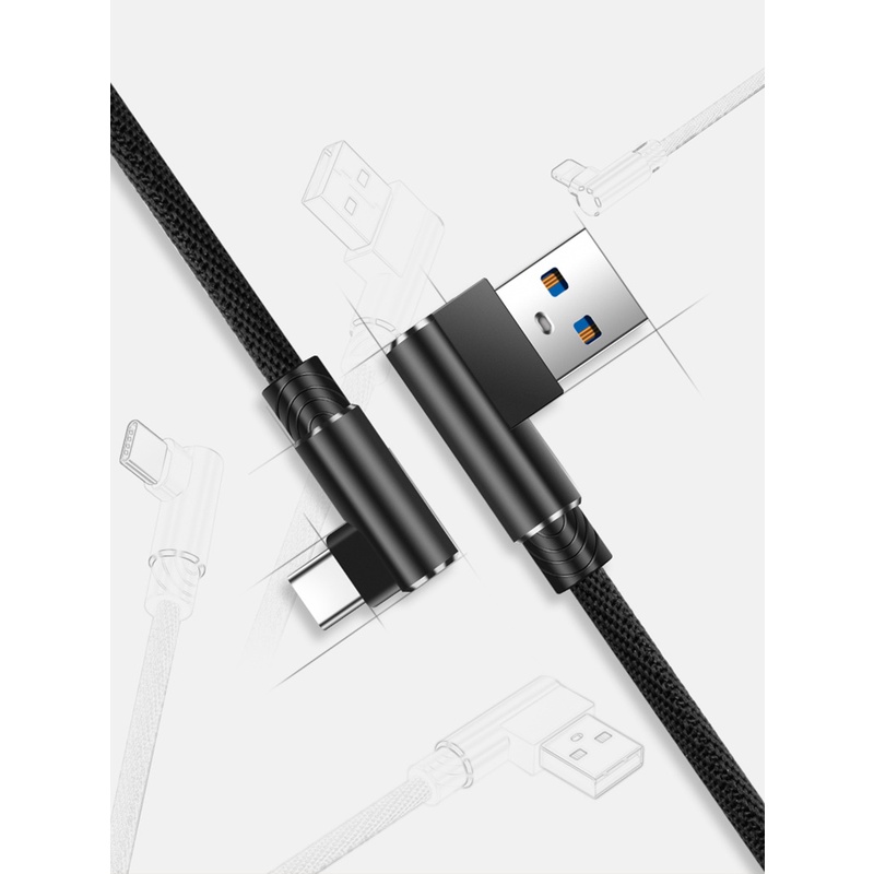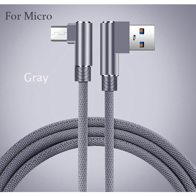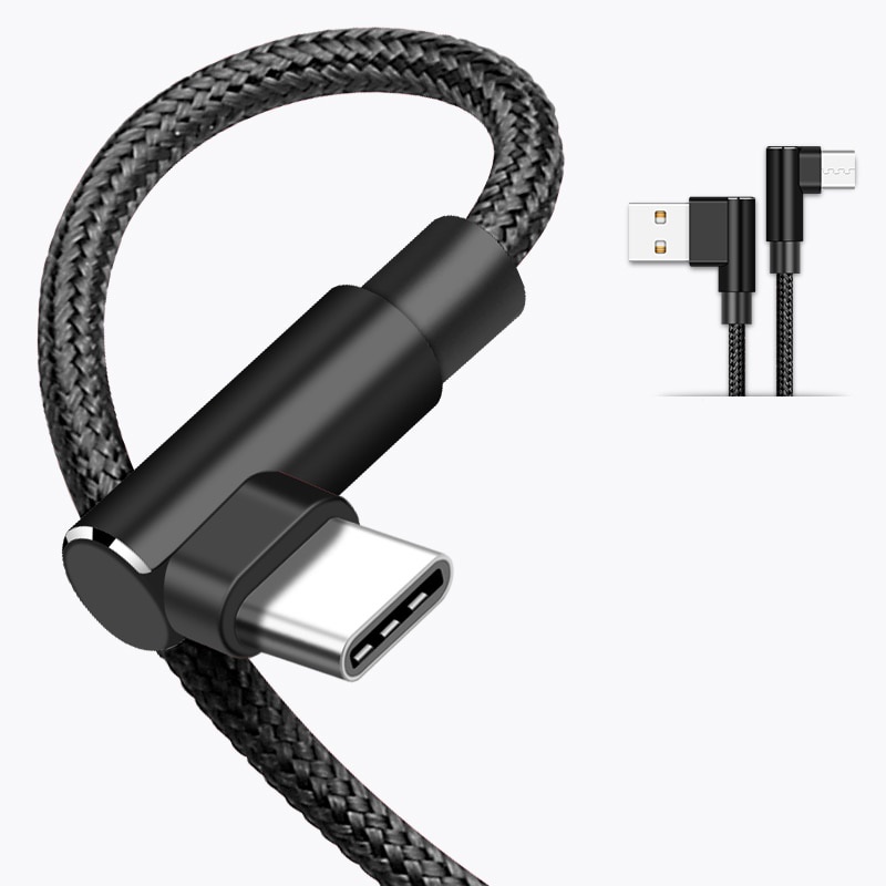 L Shape Type C i Phone Micro USB Braided Nylon Fast Charge Data Cable Smartphone Tablet 1m