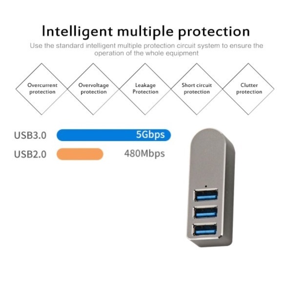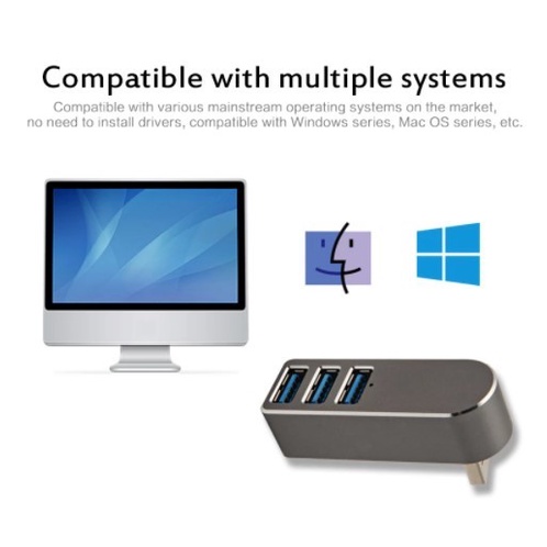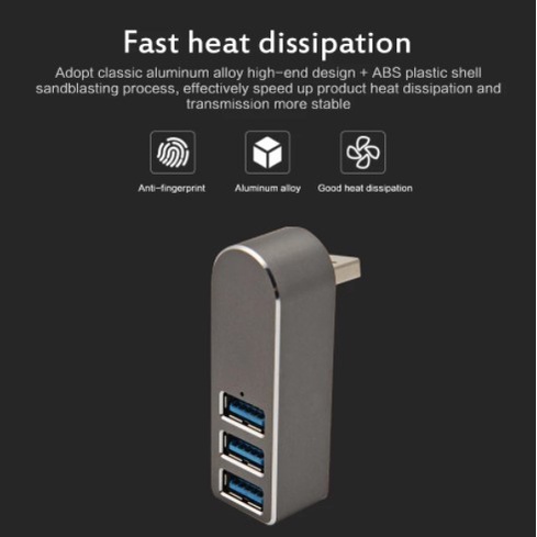 L Shape USB HUB Splitter 180 Degree Rotation 3.0 5Gbps for PC Laptop Windows Mac