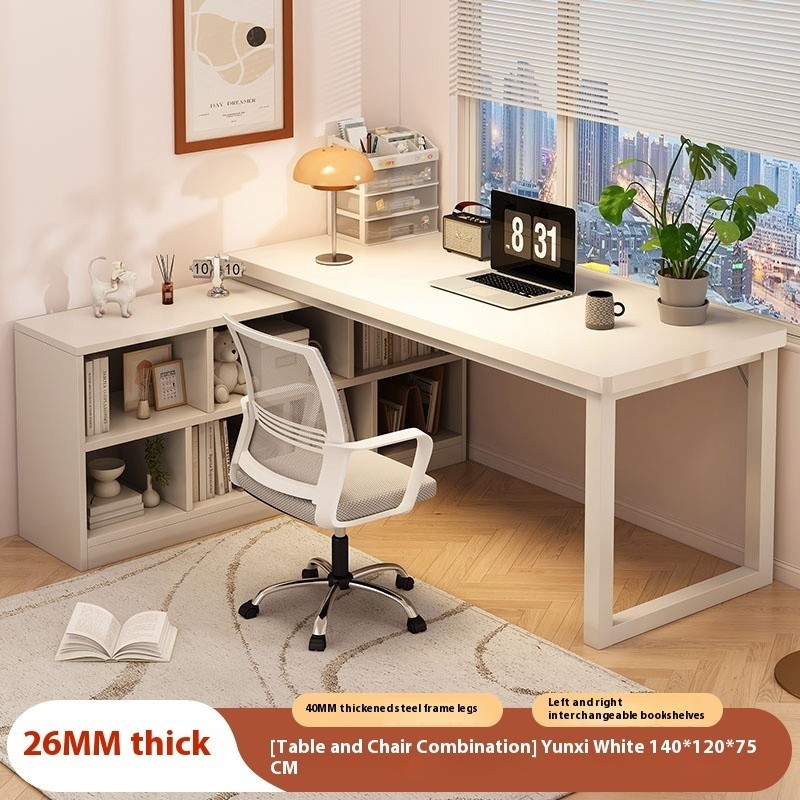 L-Shaped Office Table Corner Computer Table Bookshelf Integrated Student Household Writing Study Table