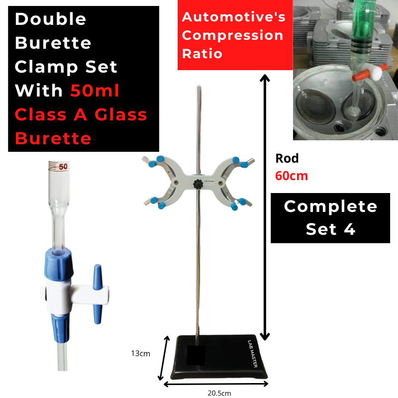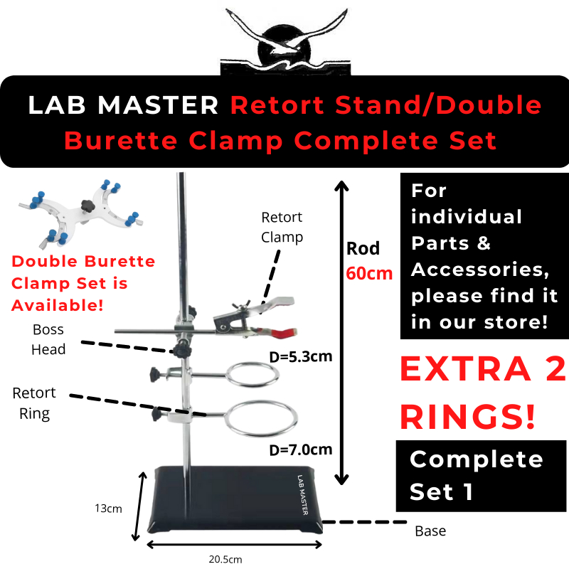 LAB MASTER/MAS H=60cm Retort Stand Complete Set with Parts (Boss head, Retort Clamp, Rod, Base, Double Burette Clamp)