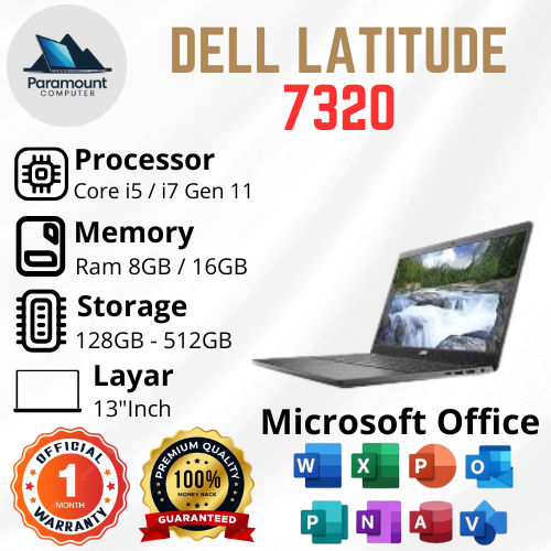 LAYAR DELL Latitude 7320 Core i5 / i7 Gen 11 Ram 16GB / 32GB SSD 256GB / 512GB Screen 13.3" Full HD
