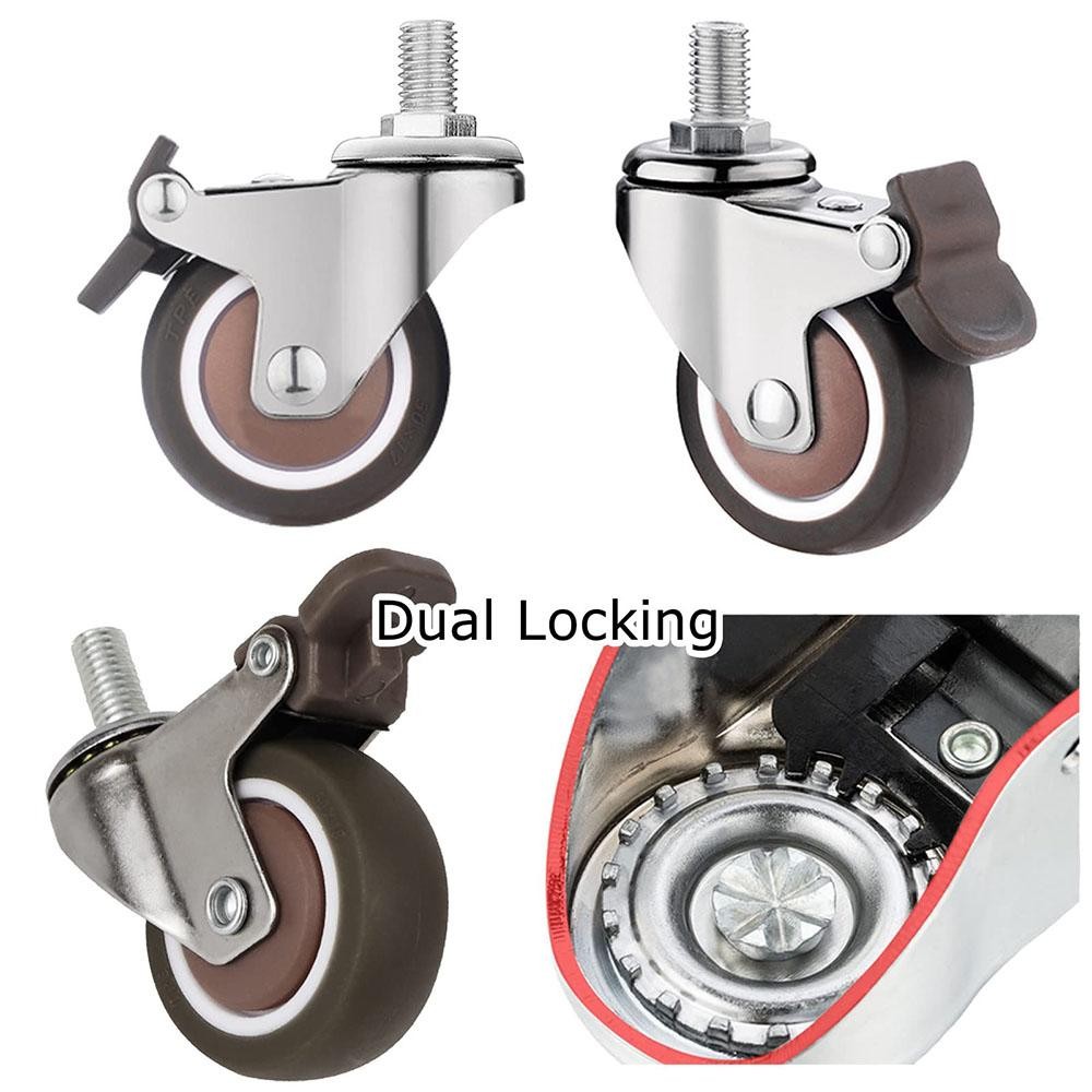 LAYOR1 4PCS Threaded Stem Swivel Casters, No Noise 1.5" / 2" Wheel Furniture Castor, M10 TPE Rubber M8 Rubber Castor Table Shelf