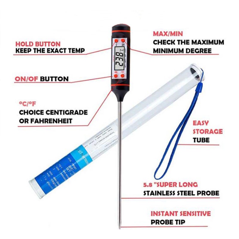 LCD Digital Kitchen Oil Thermometer Needle Food Thermometer Instant Read Meat Temperature Probe Meter Tester with Cooking Barbecue Tool
