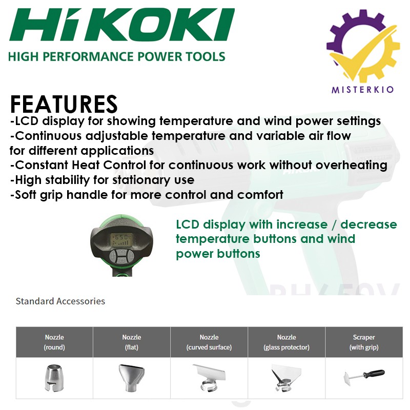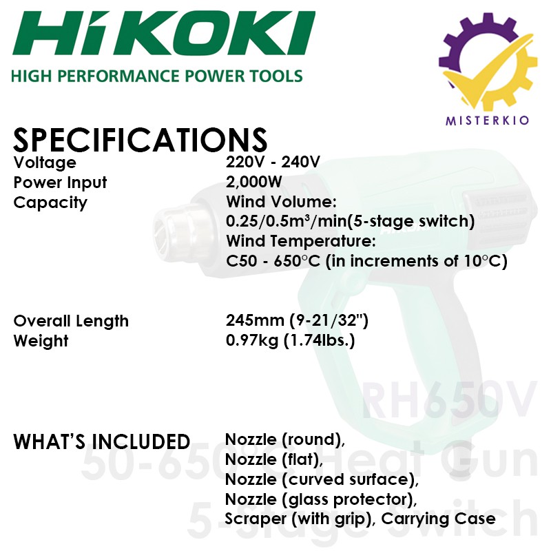 LCD Display Heat Gun with 4 Different Nozzles, Hikoki Hitachi RH650V, 5-Stage Switch 2000W [Ready-Stock in Singapore]