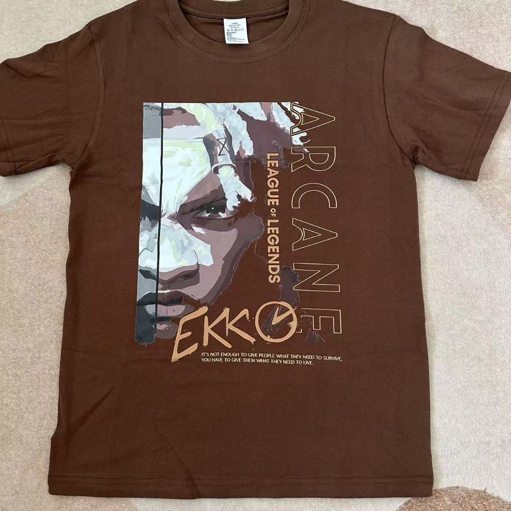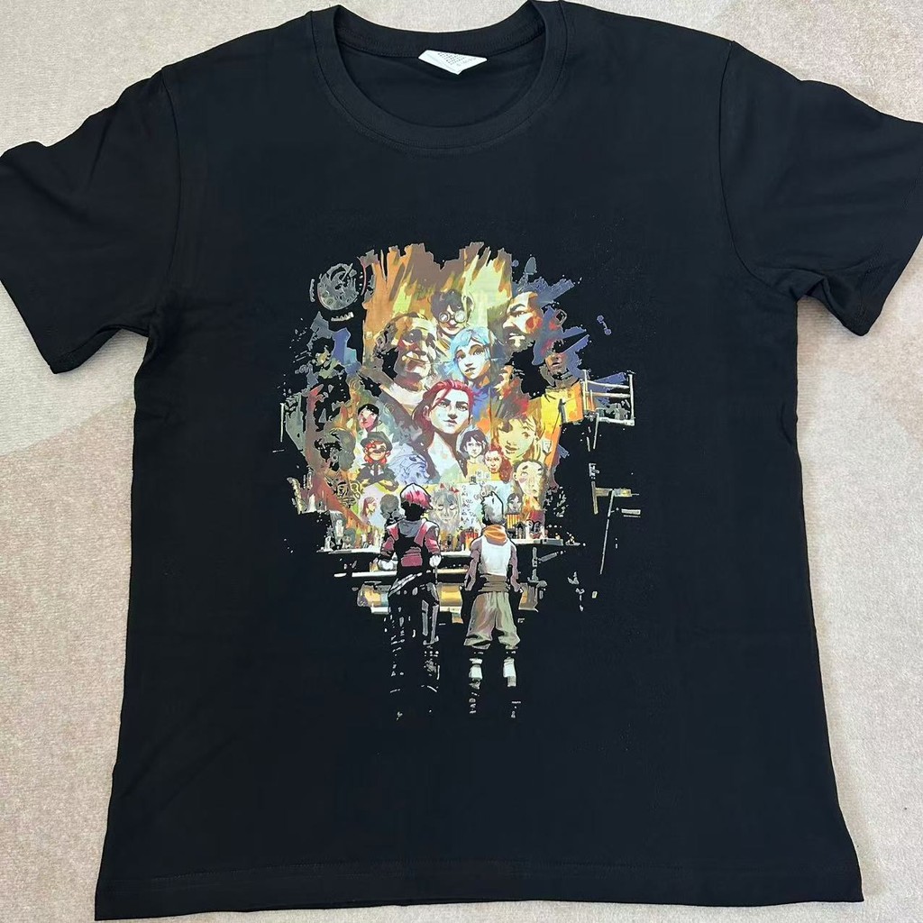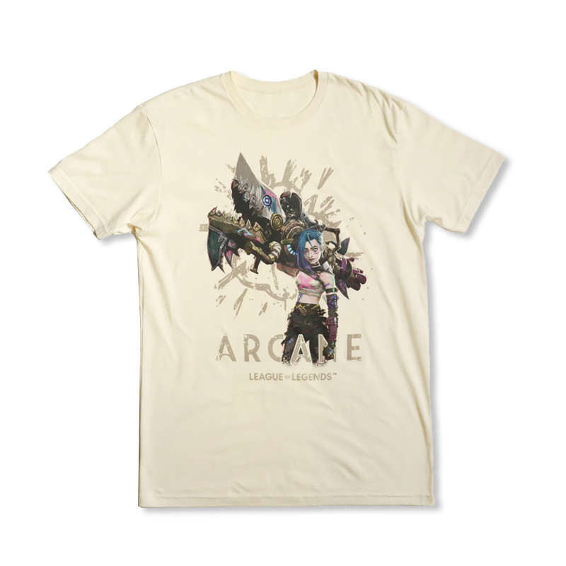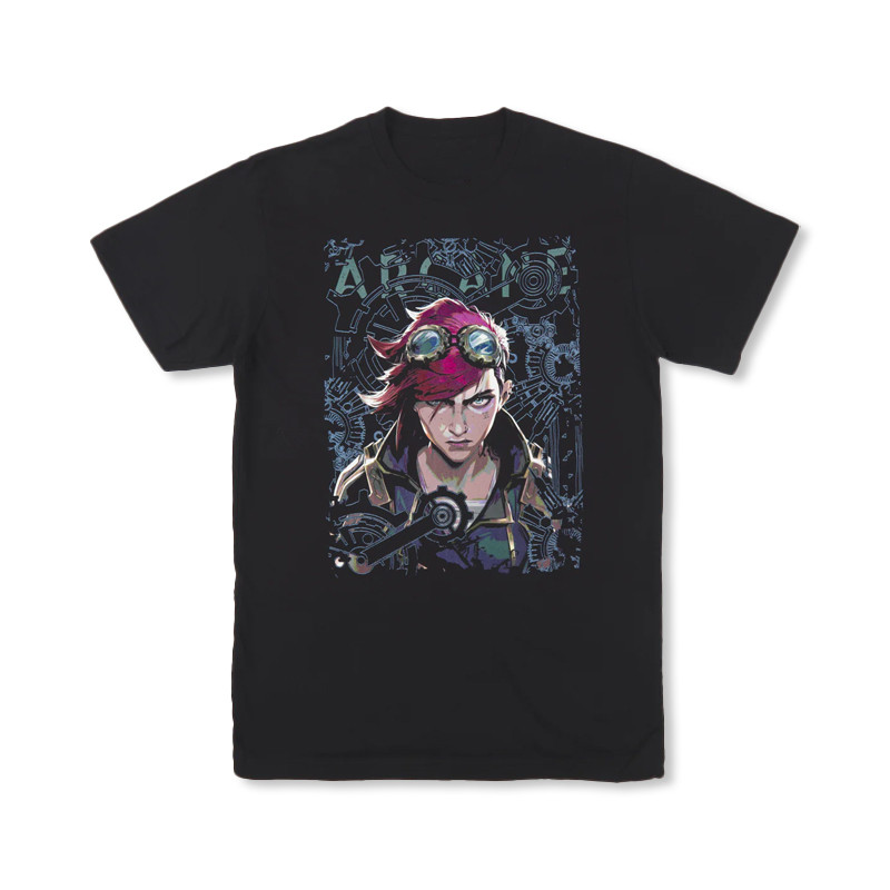 LEAGUE OF LEGENDS ARCANE Merch Cotton T-shirt Plus Size JINX EKKO VI CAITLYN Anime Printed Short Sleeved Top for Men and Women Vintage Fashion Loose Casual Shirt Tee
