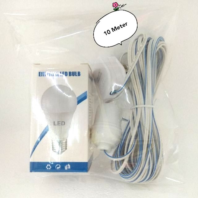 LED Bulb 12W Complete 2 Core Wire ( 2M/5M/10M ) ,13A 3 Pin Plug & Lamp Holder