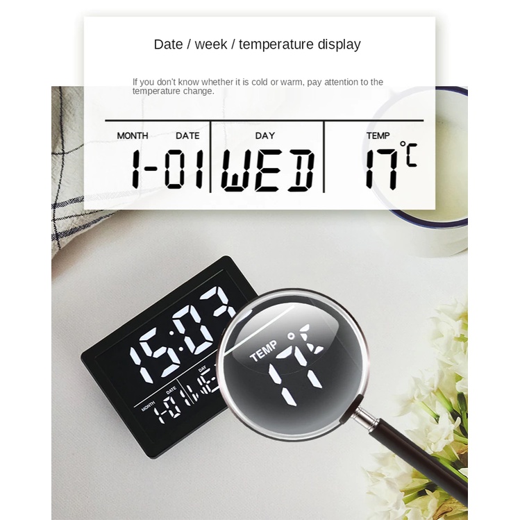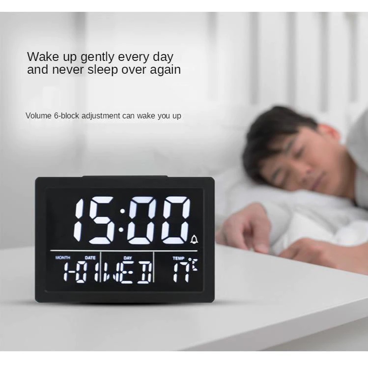 LED Digital Clock Wall Clock Desktop Alarm Clock 8 Alarms Voice Control Snooze Large Display Temperature Calendar