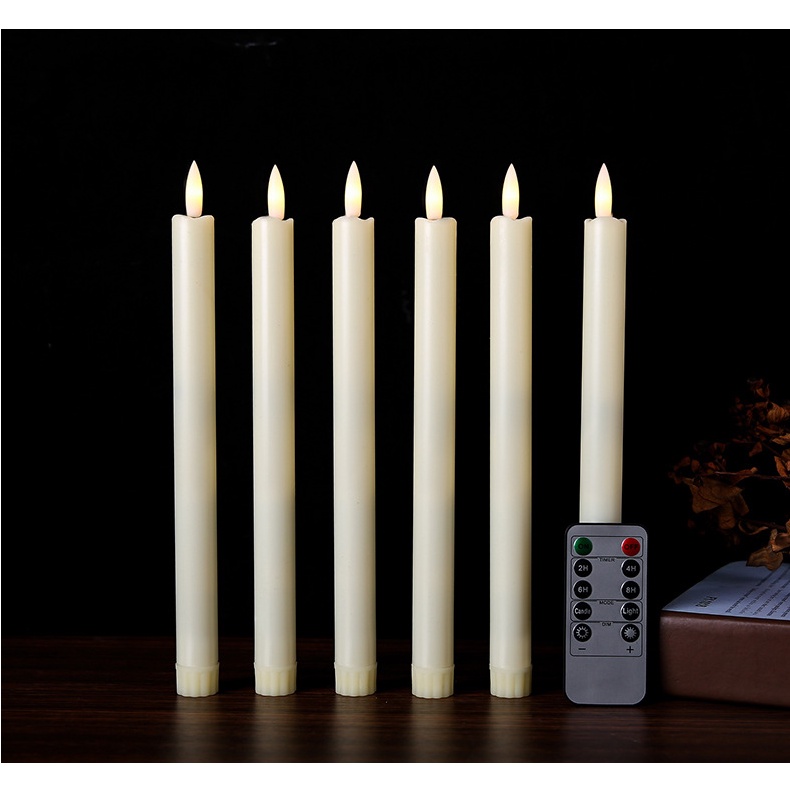 LED Flameless Ivory Taper Candles Flickering with Remote Battery Operated Led Warm 3D Wick Light Window Candles