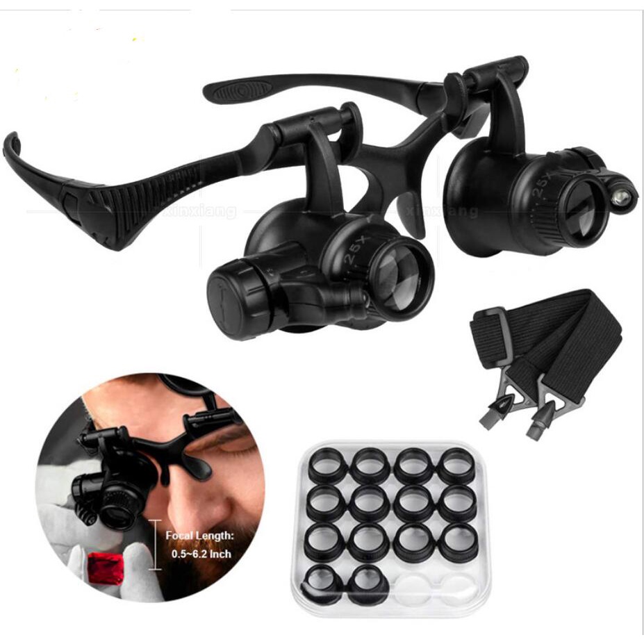 LED Head-Mounted Magnifying Glass/Binocular Glass With Light 10X 15X 20X 25X Total 8 Sets