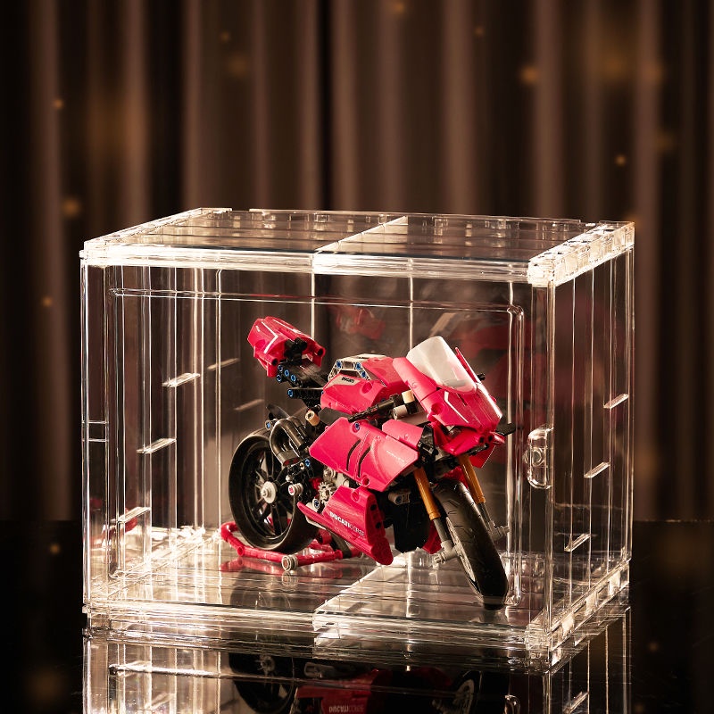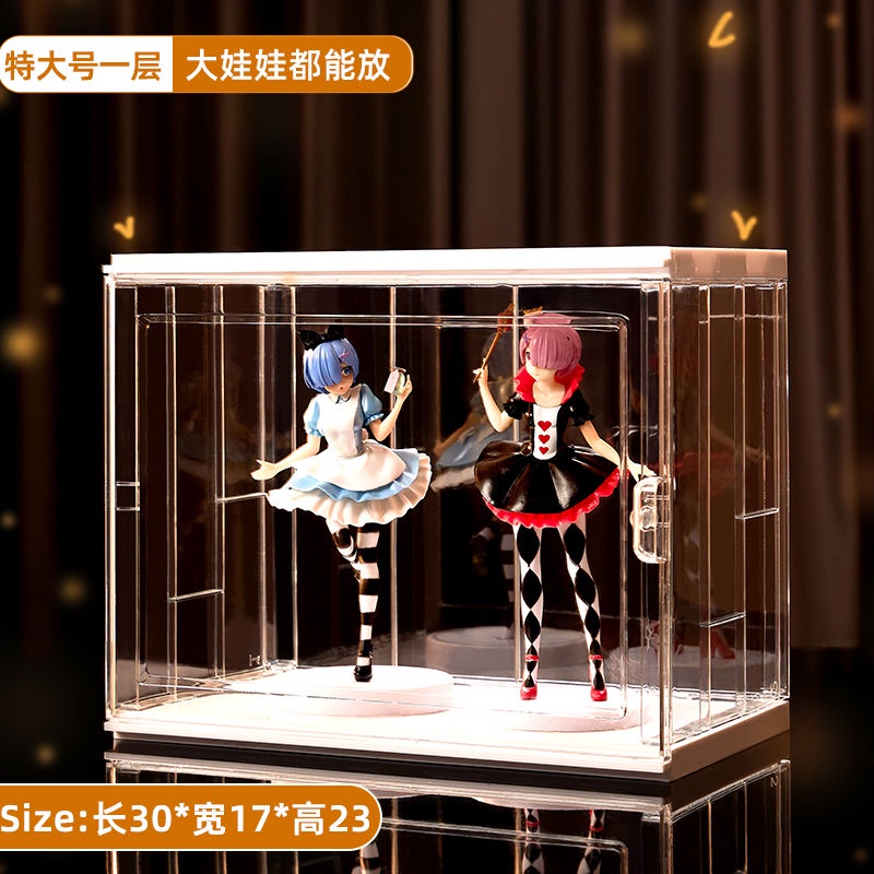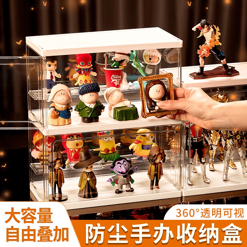 LED Light Fully Transparent Acrylic Display Case Blind Box Popmart Figurines Storage with Rack Shelf Storage Display Box