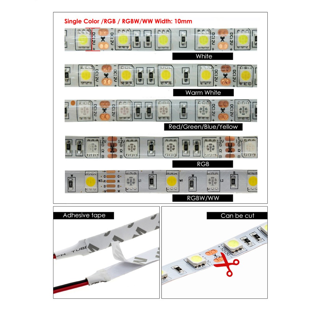LED Light Strip 5M 5050 SMD DC12V 60LEDs/m Flexible LED Light RGBW 5050 LED Strip Cool White/Warm White/Natural White Red/Blue/Green Color Diode Tape Ribbon Fita String Lighting