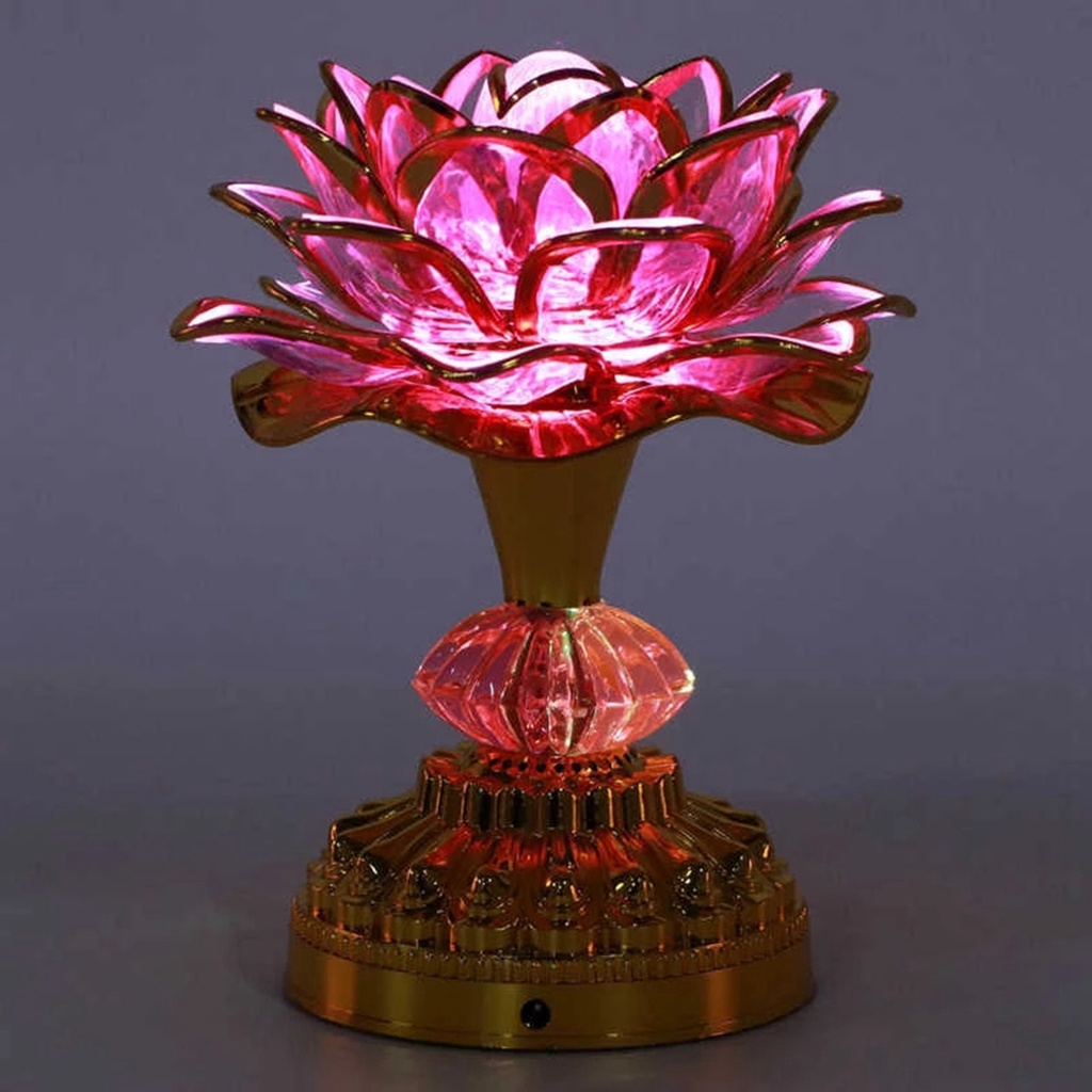 LED Lotus Buddhist Lights Color-Changing Buddha Lotus Lamps Battery-Operated Buddhist Lamp Worship Prayer Supply